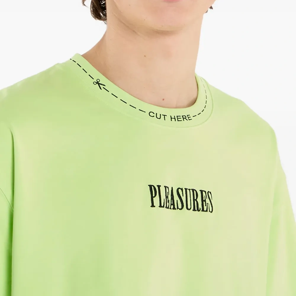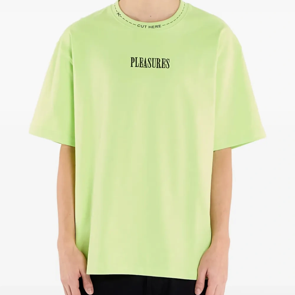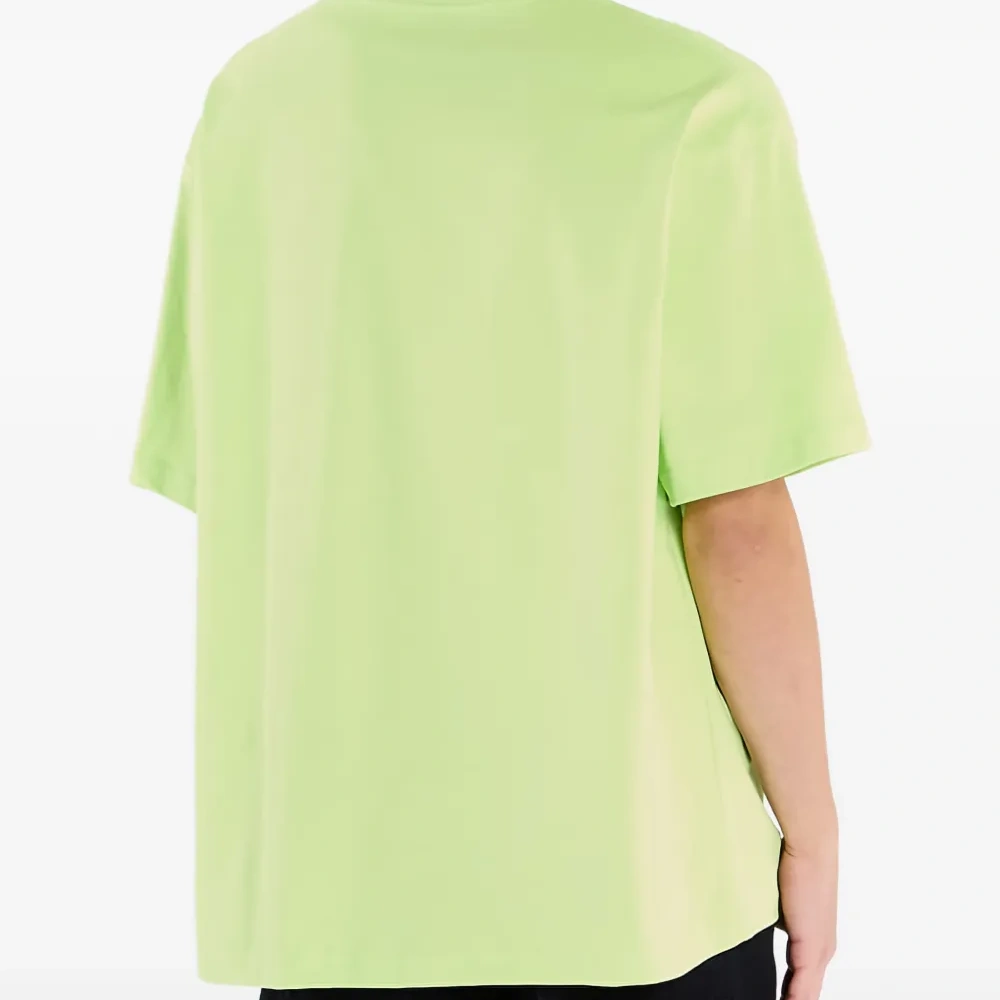зелёная футболка с круглым вырезом, короткими рукавами, надписью и отделкой строчкой