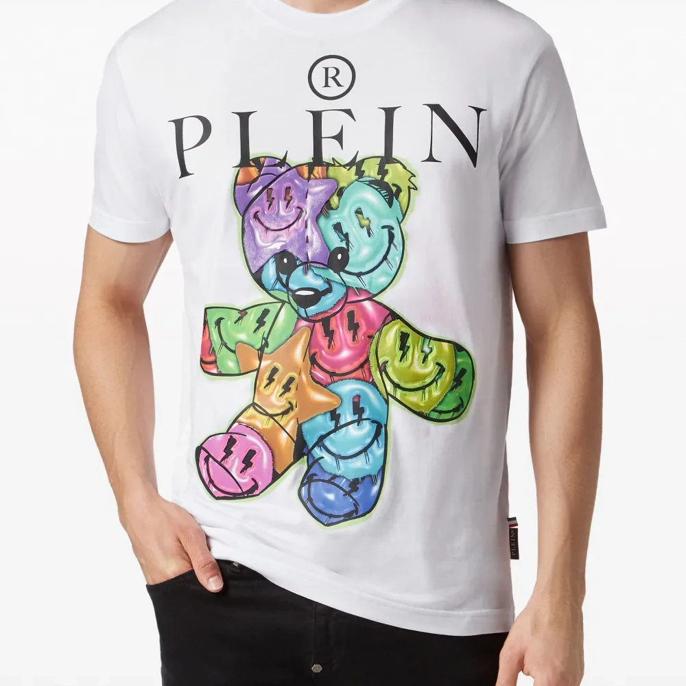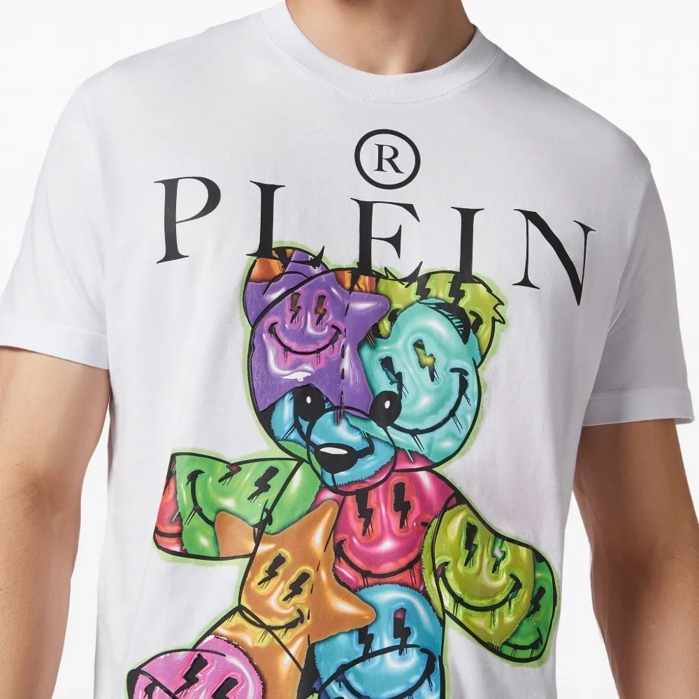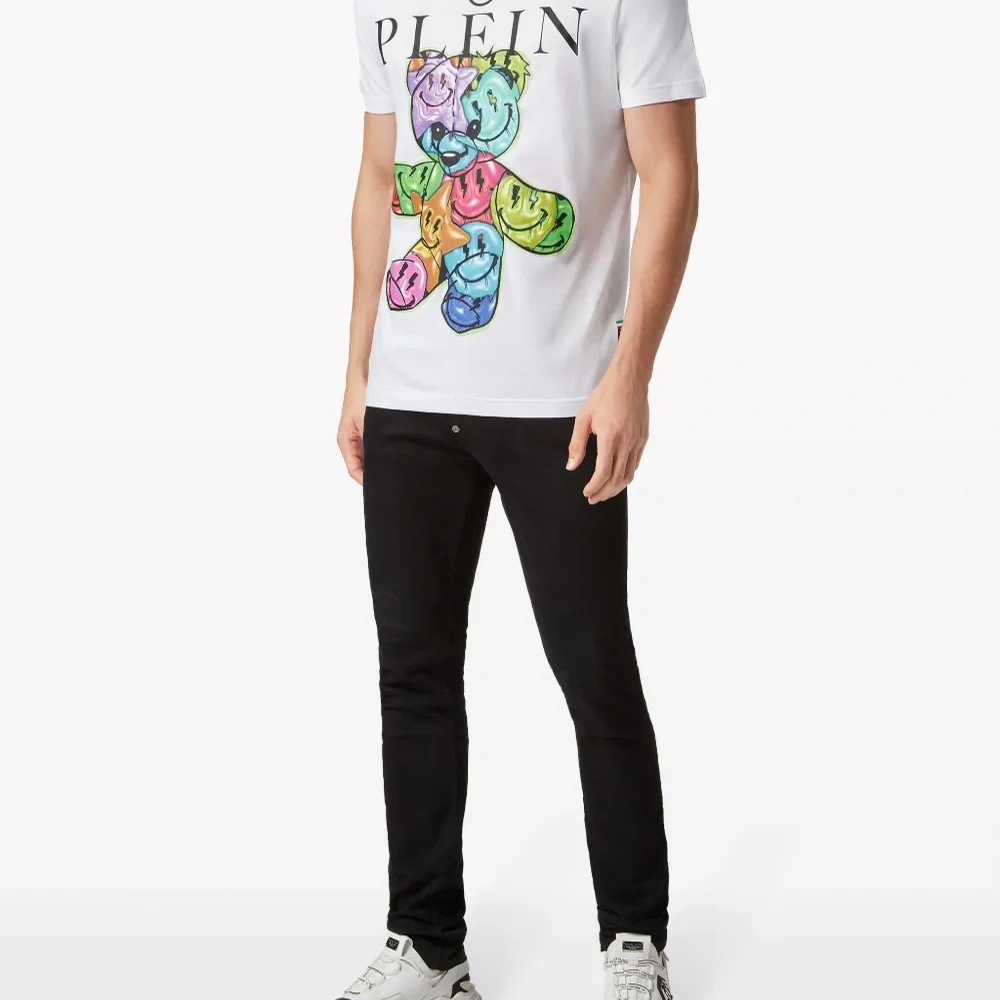 Белый/разноцветный, хлопок, сплошной графичный принт, принт с изображением смайла, круглый вырез, короткие рукава и прямой подол.