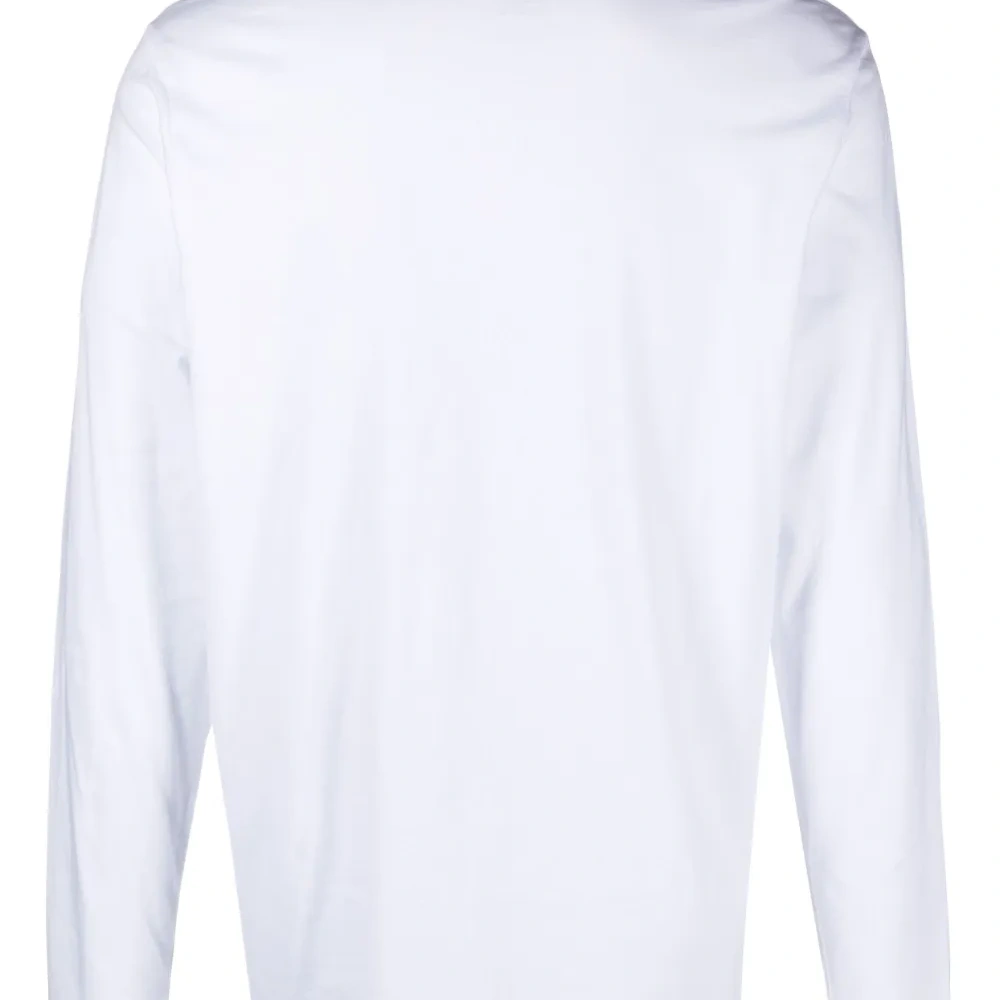 Белый, эластичный хлопок, круглый вырез, длинные рукава и прямой подол.