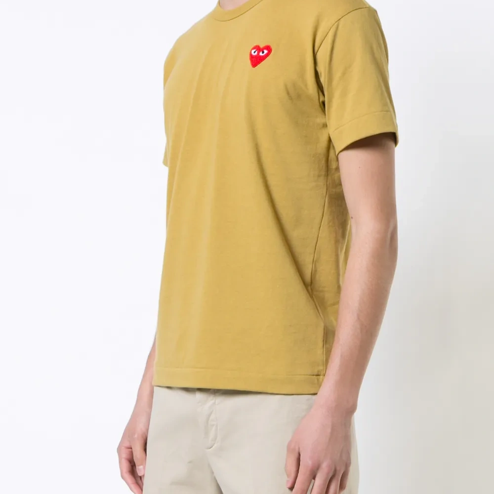 Хлопковая футболка оливкового цвета с нашивкой в виде сердца от Comme Des Garçons Play.