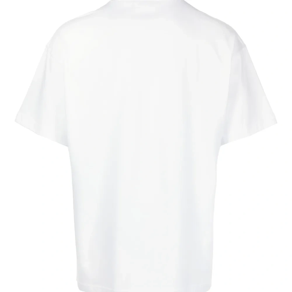 Белый, органический хлопок, принт пейсли, логотип спереди, круглый вырез, короткие рукава и прямой подол.