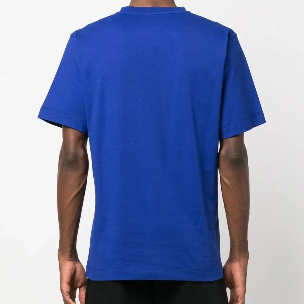 Синий, органический хлопок, круглый вырез, короткие рукава, логотип спереди и прямой подол. Ответственный выбор: Этот товар как минимум на 50% состоит из материалов, которые признаны более безопасными для окружающей среды или сертифицированы независимыми организациями.
