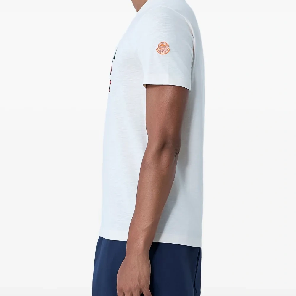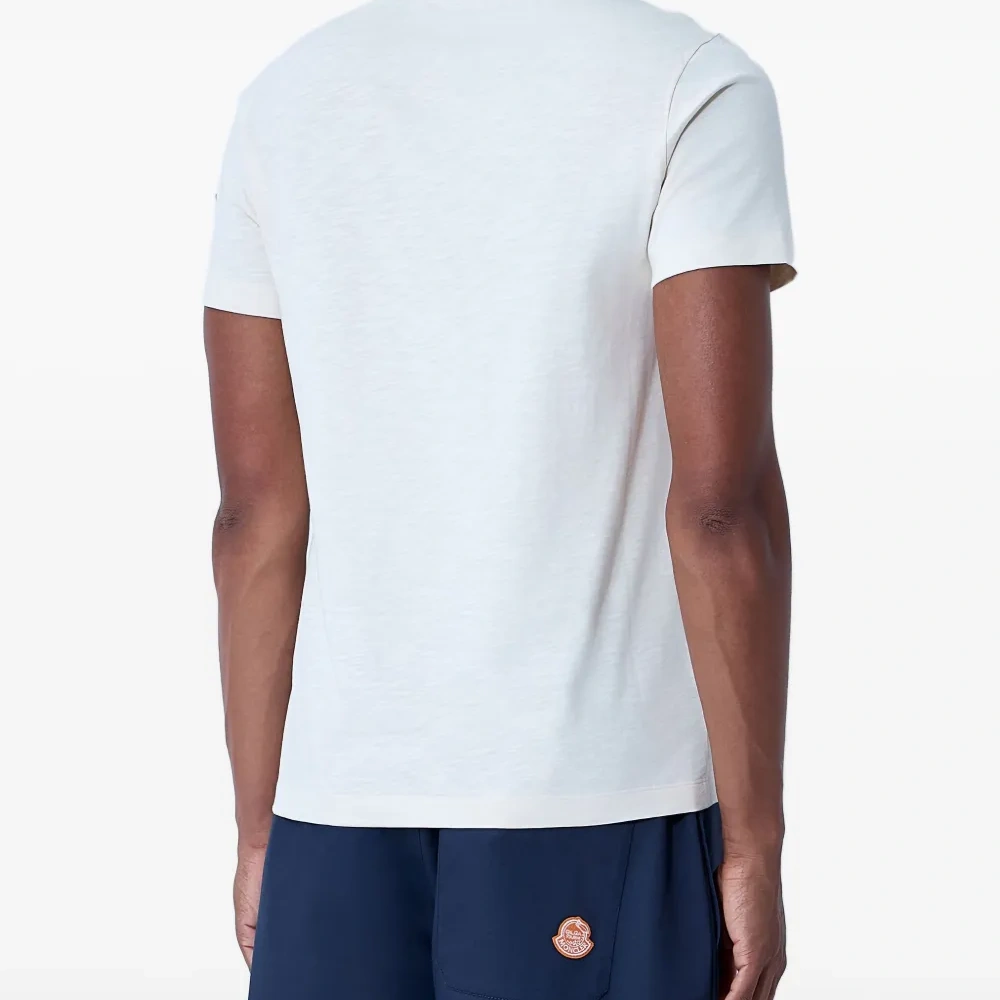 - хлопковый джерси цвета "офф-вайт" (молочный/слоновая кость) - круглый вырез горловины - короткие рукава - логотип спереди - небольшой логотип/патч сзади