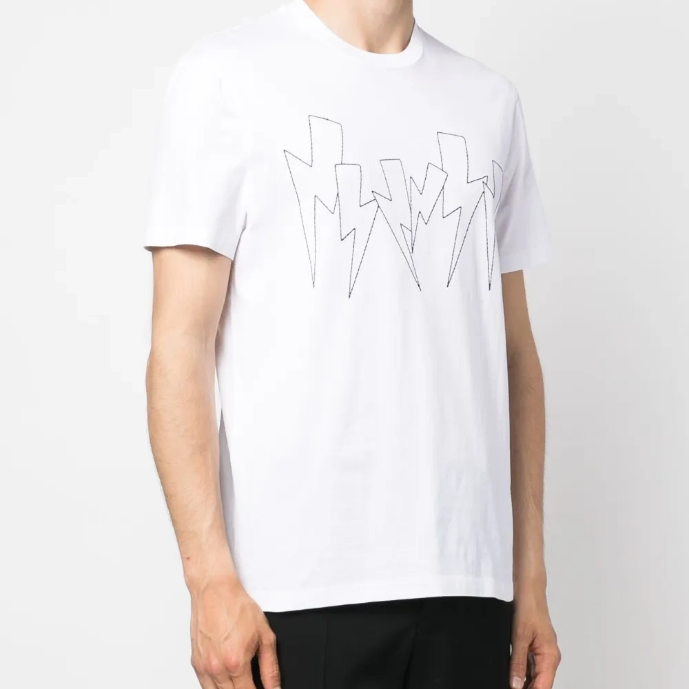 Белый/черный, хлопок, принт Thunderbolt, круглый вырез, короткие рукава и прямой подол.