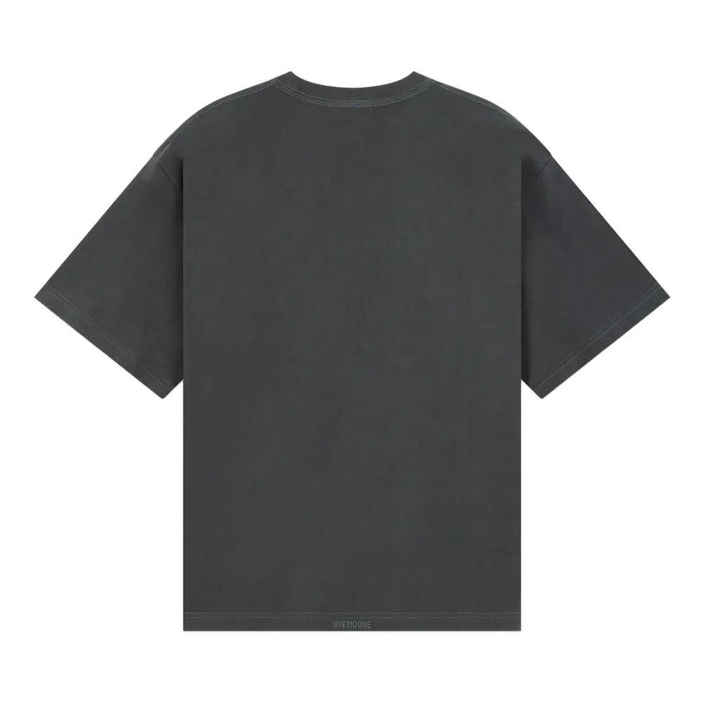 серый топ с круглым вырезом, короткими рукавами и логотипом