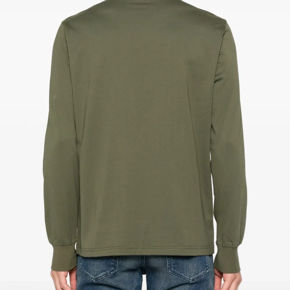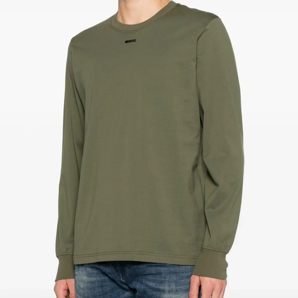 оливково-зеленый свитер с круглым вырезом, длинными рукавами и логотипом