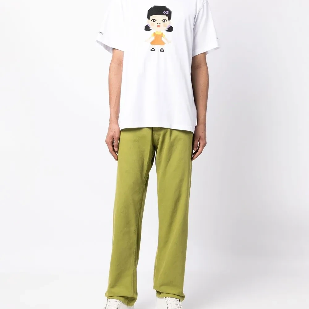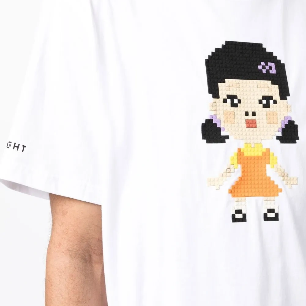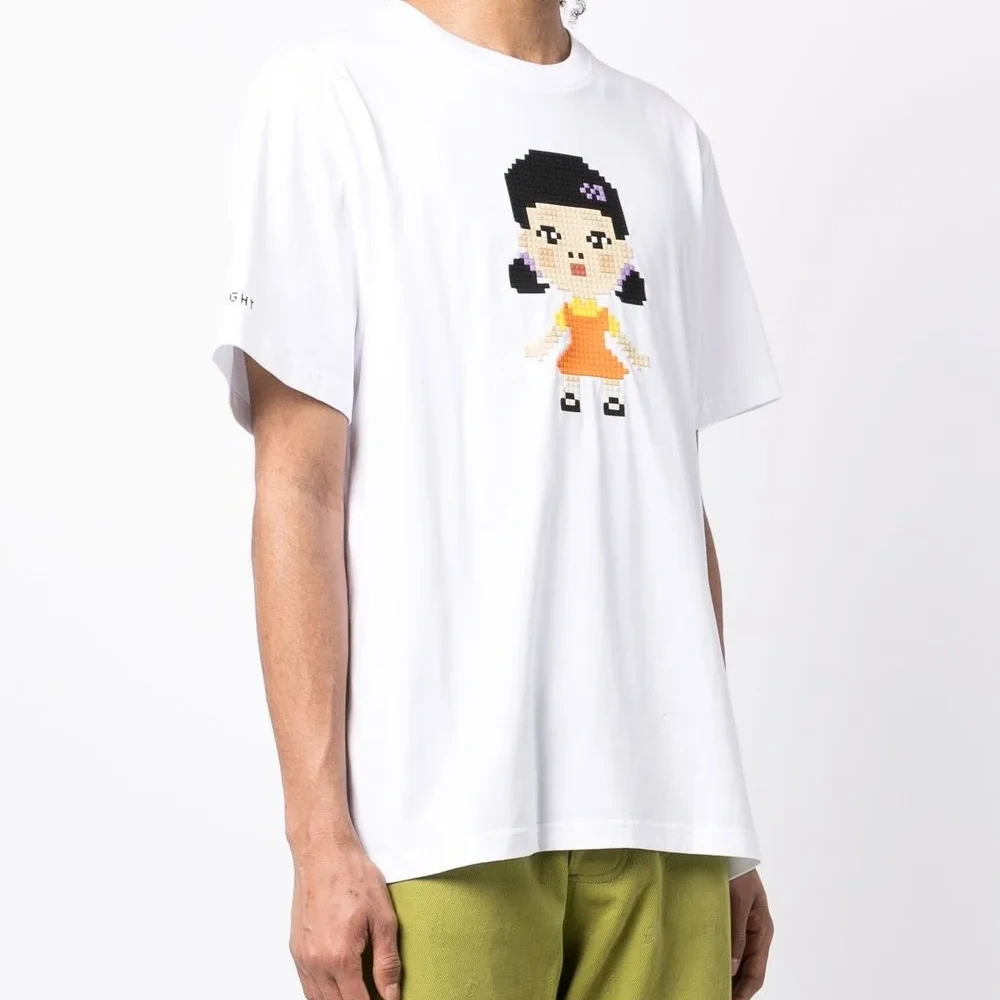 Белый, хлопок, ткань джерси, принт-иллюстрация, круглый вырез, короткие рукава и прямой подол.