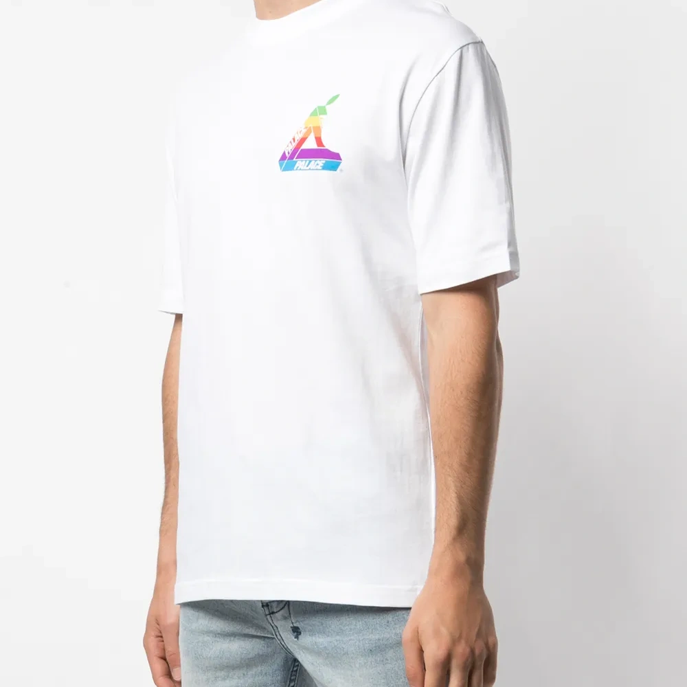 Футболка Jobsworth от Palace. Круглый вырез под горло с окантовкой, логотип на груди, узор сзади и короткие рукава. Цвет: белый. Эта модель представлена на маркетплейсе, где можно найти самые редкие модели одежды и кроссовок, о которых мечтают коллекционеры и любители streetwear по всему миру.