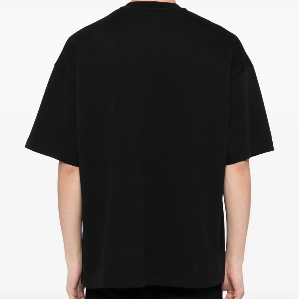 черный принт с логотипом спереди круглый вырез короткие рукава