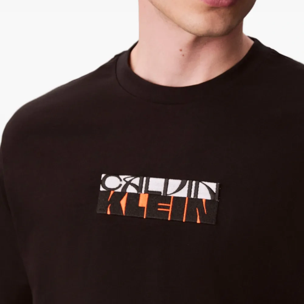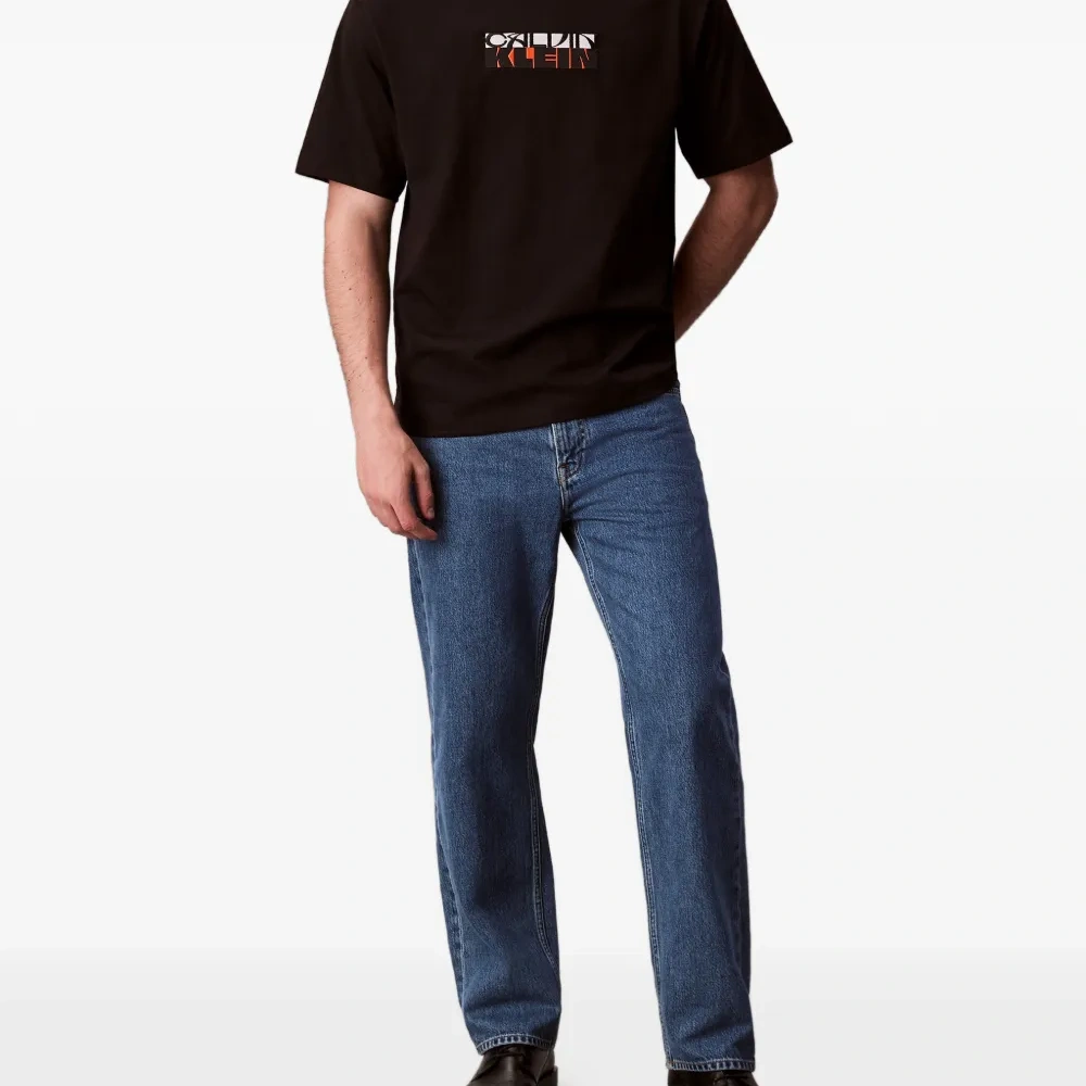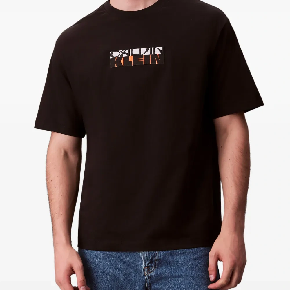черная футболка с графическим принтом, круглым вырезом и короткими рукавами
