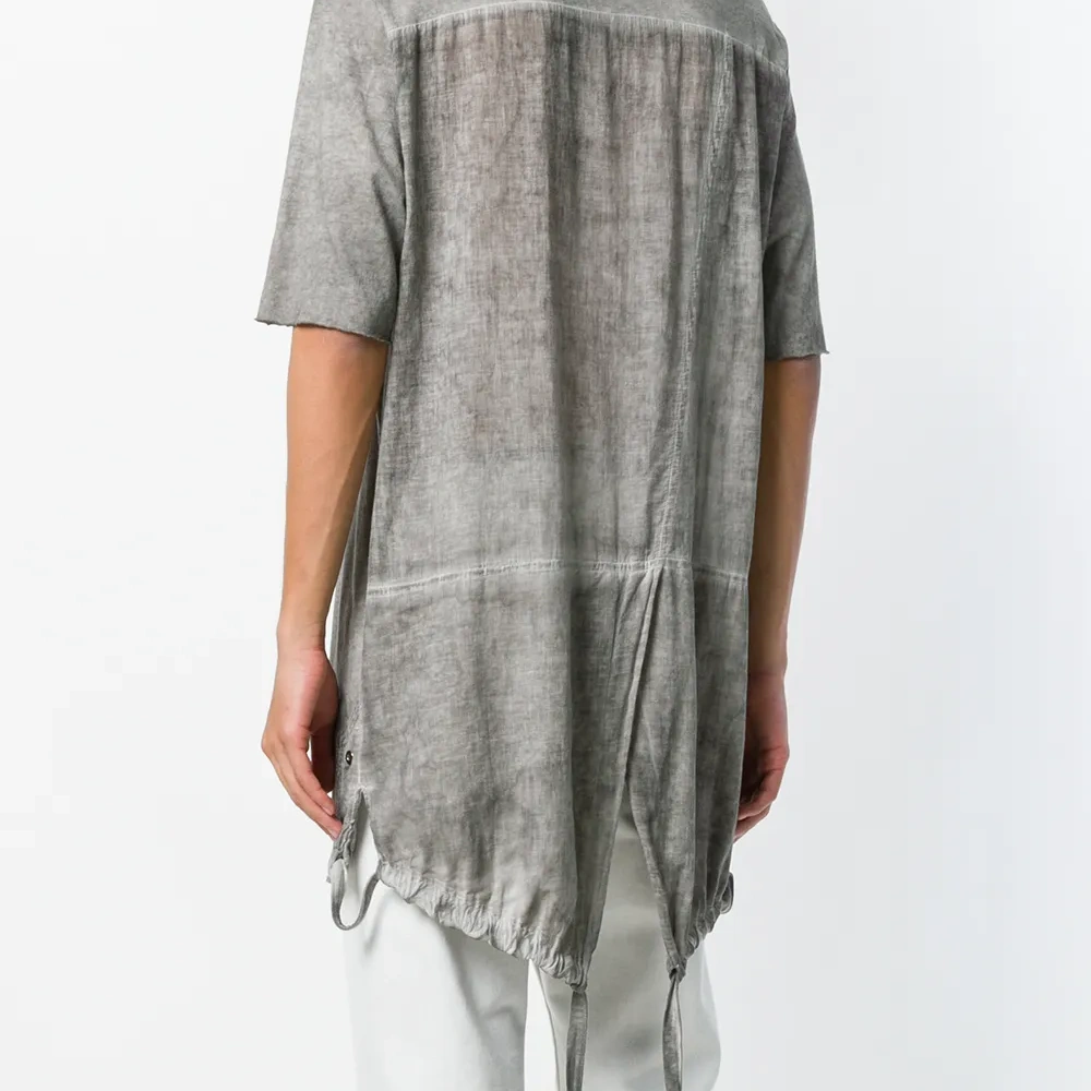 Светло-серая хлопковая футболка в стилистике парки от Lost & Found Ria Dunn. Закругленный носок, короткие рукава, завязка на шнурке.