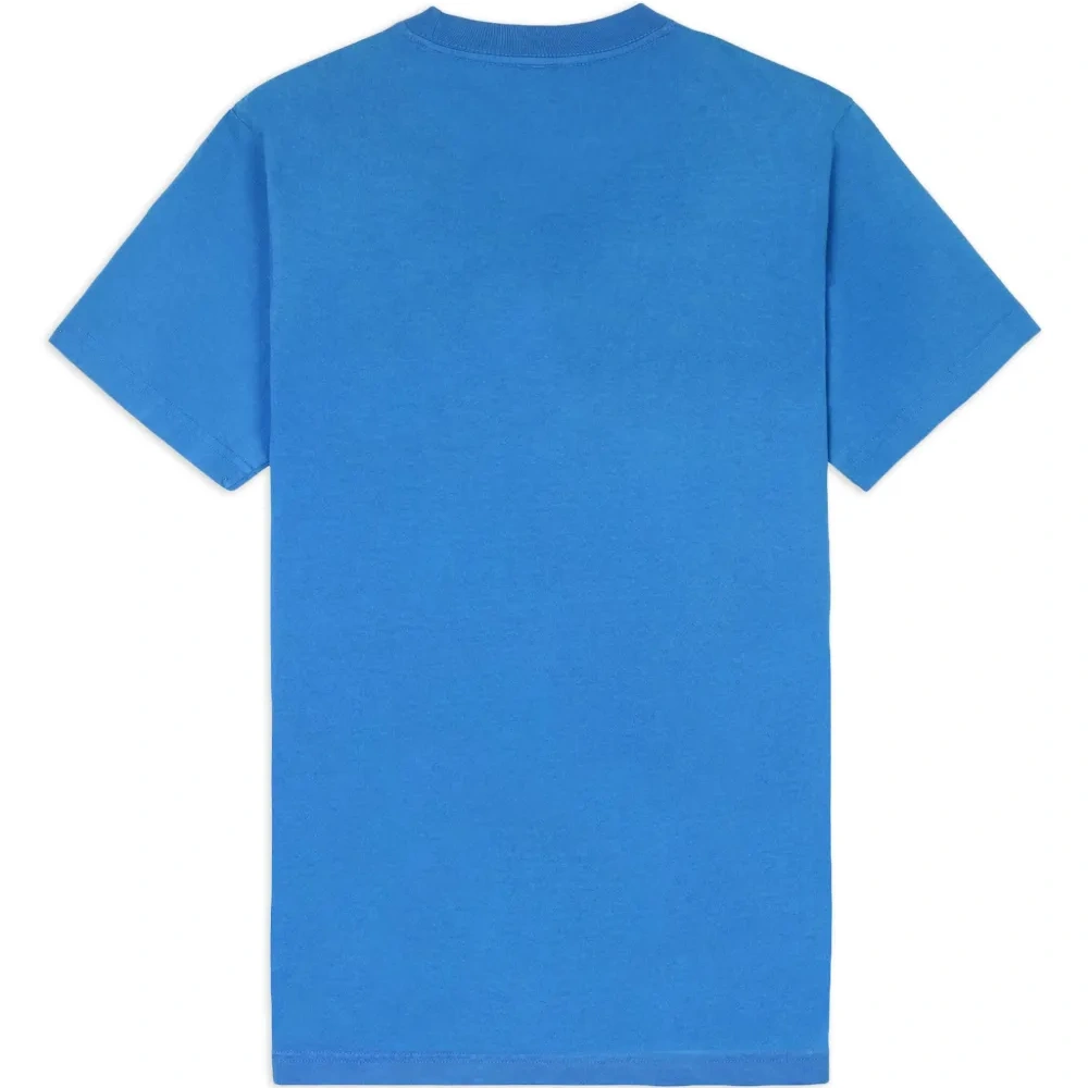Синий, белый, хлопок, логотип спереди, круглый вырез, короткие рукава и прямой подол.