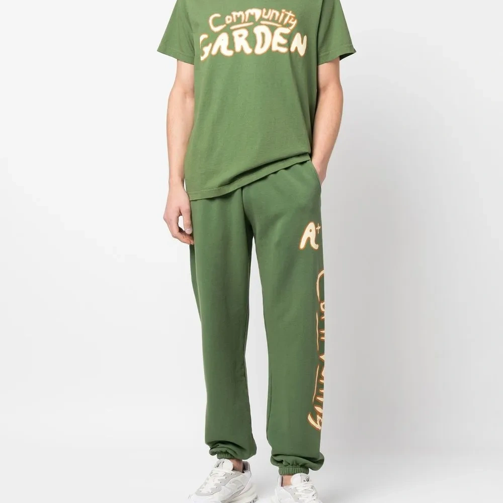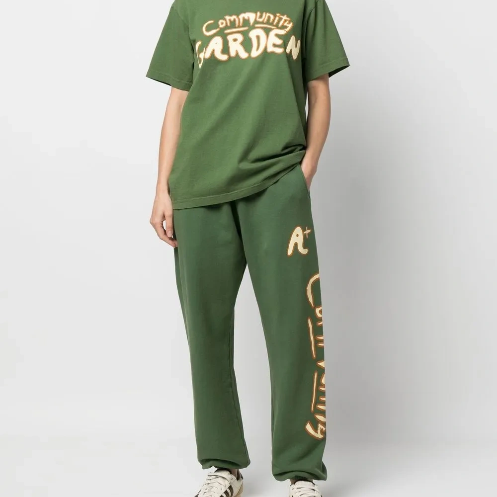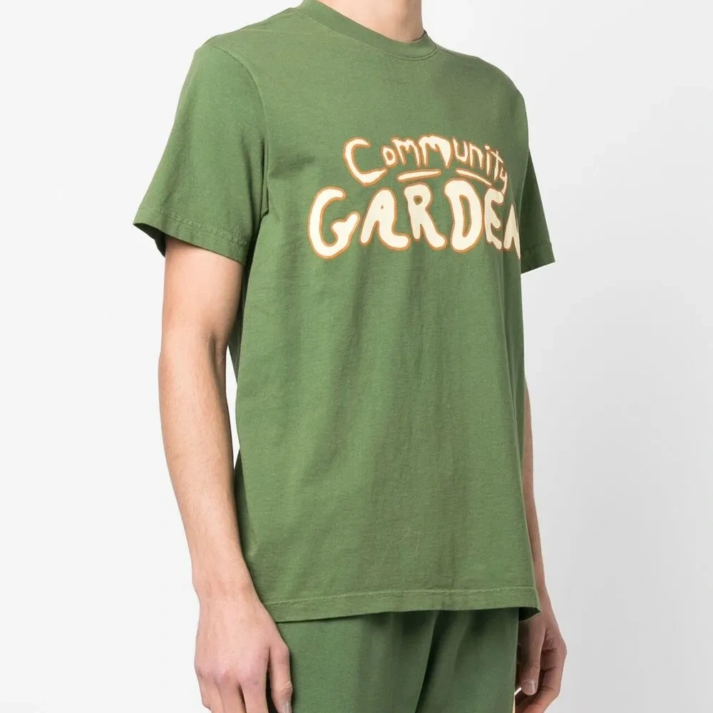 Экстракт кейла, зеленый, переработанный хлопок, текстовый принт, круглый вырез, короткие рукава и прямой подол.