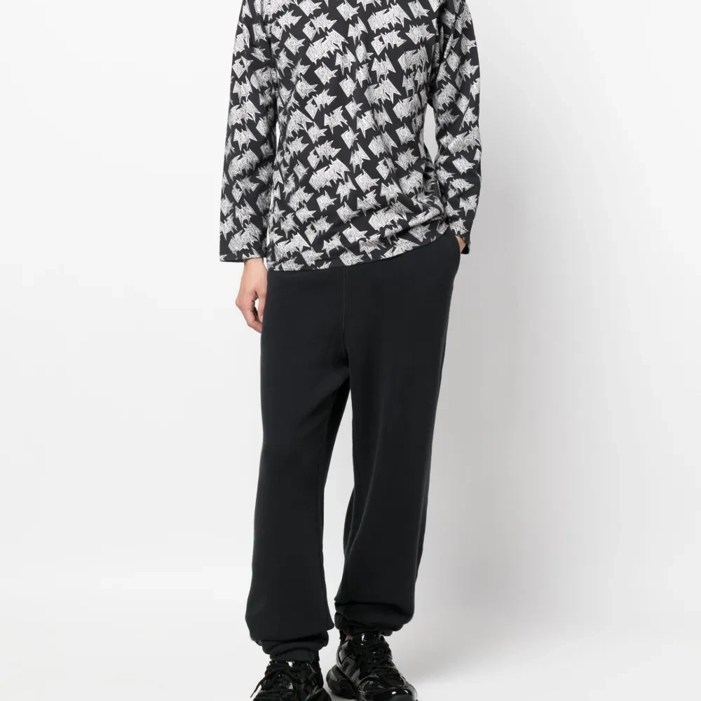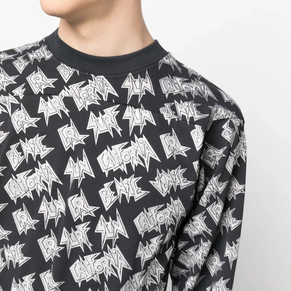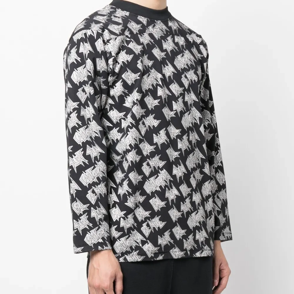 Черный/белый, хлопок, сплошной принт с логотипом, круглый вырез, длинные рукава и прямой подол.