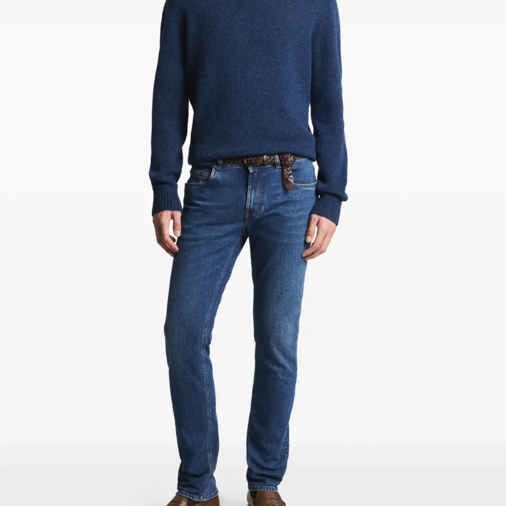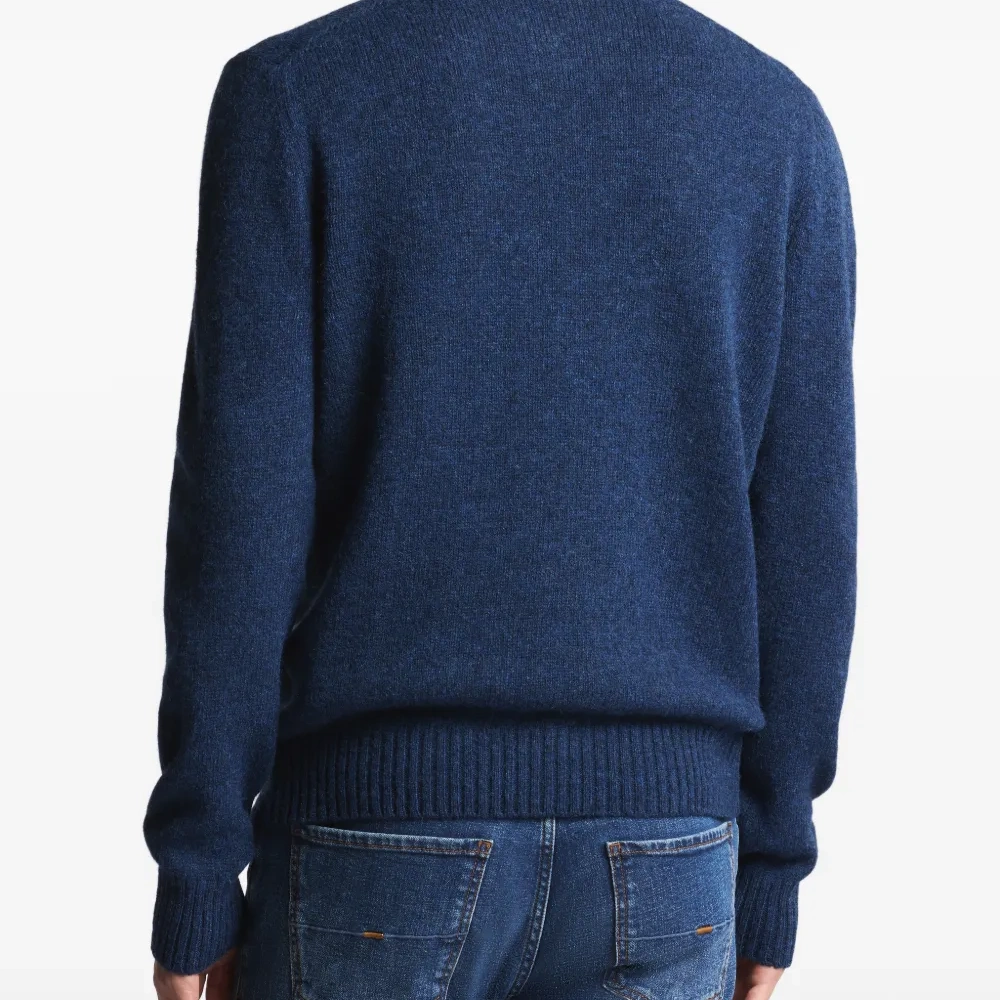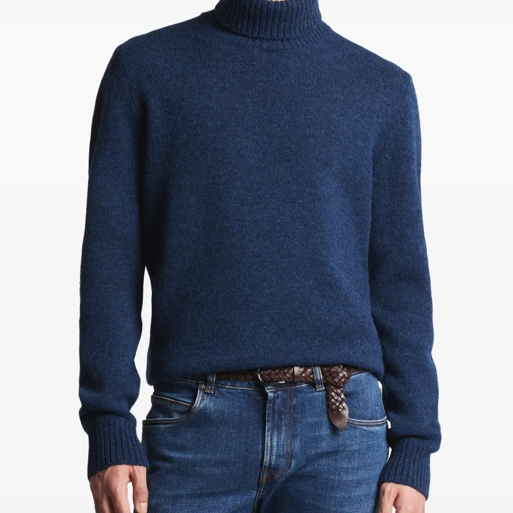 синий гольф с воротником-стойкой, ребристым подолом и манжетами