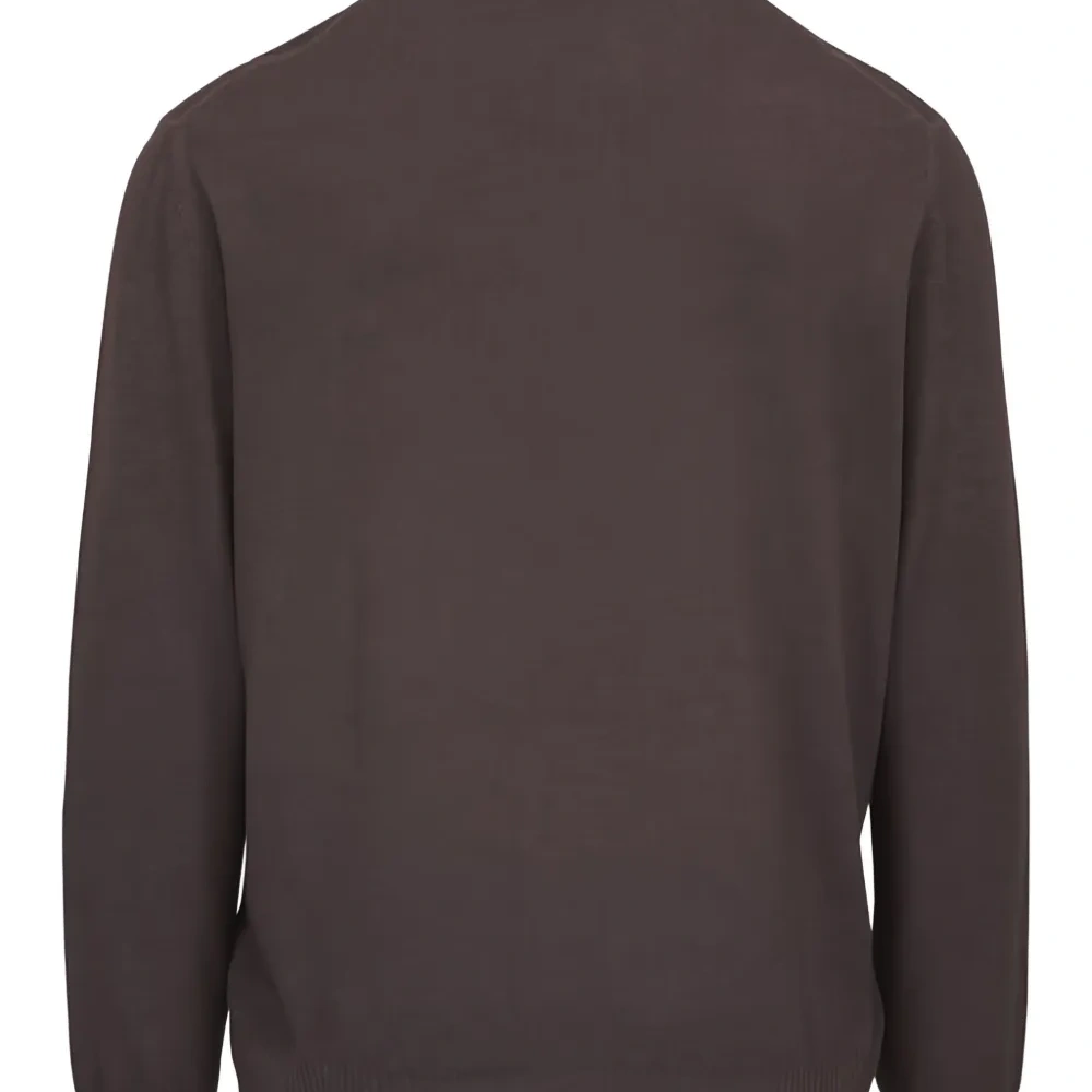 коричневый свитер с молнией у ворота, длинными рукавами и трикотажной отделкой