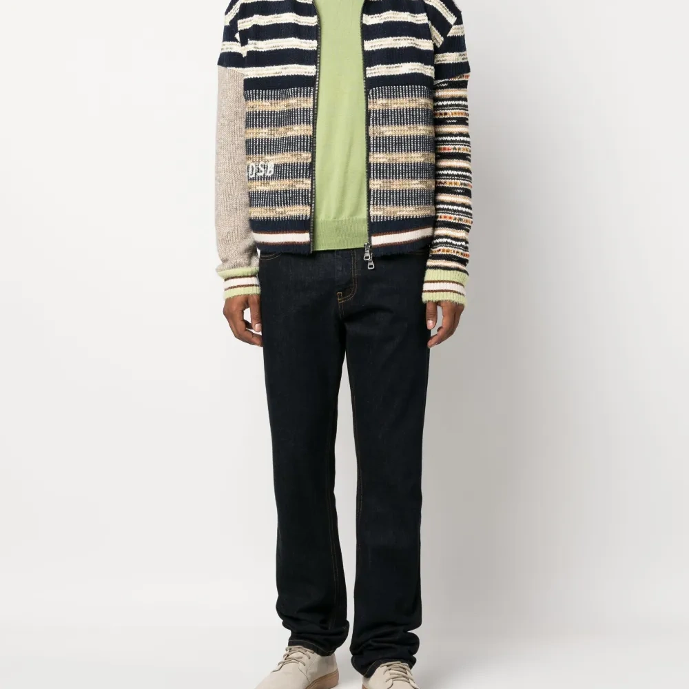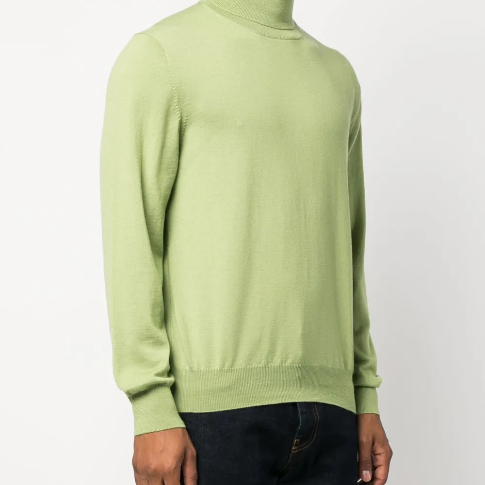 Зеленый, необработанная шерсть, отделка в рубчик, высокий воротник, длинные рукава и прямой подол. Это унисекс-модель. Обратите внимание, что для нее используется мужская размерная сетка.