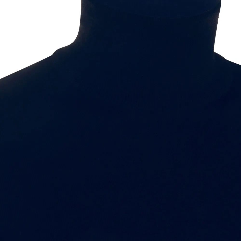 темно-синий, высокий ворот, длинные рукава, манжеты и низ в рубчик