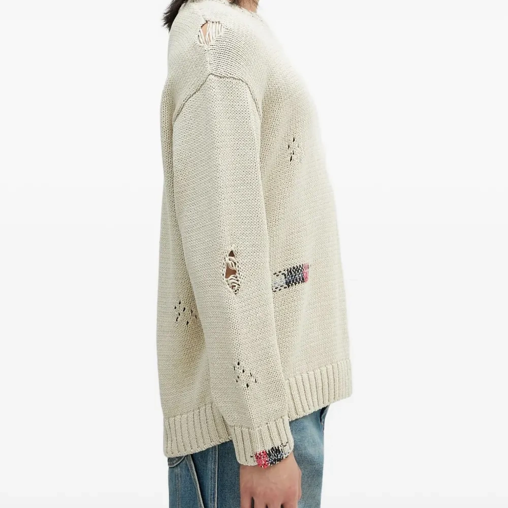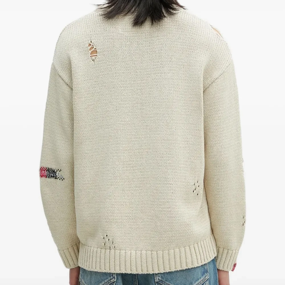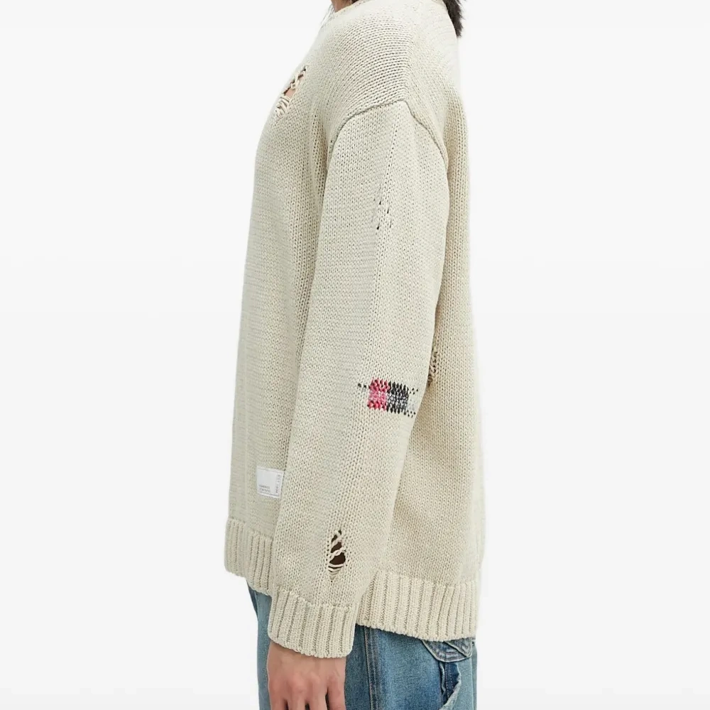 Свитер с эффектом потертости и вышивкой