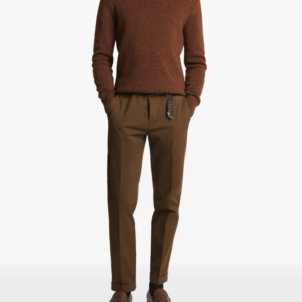 коричневая водолазка с длинными рукавами и рубчатой отделкой