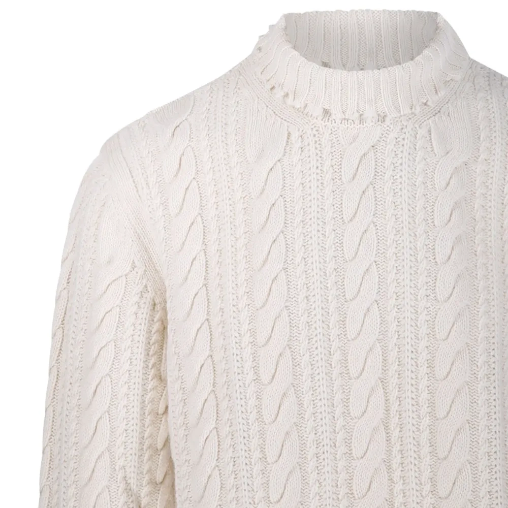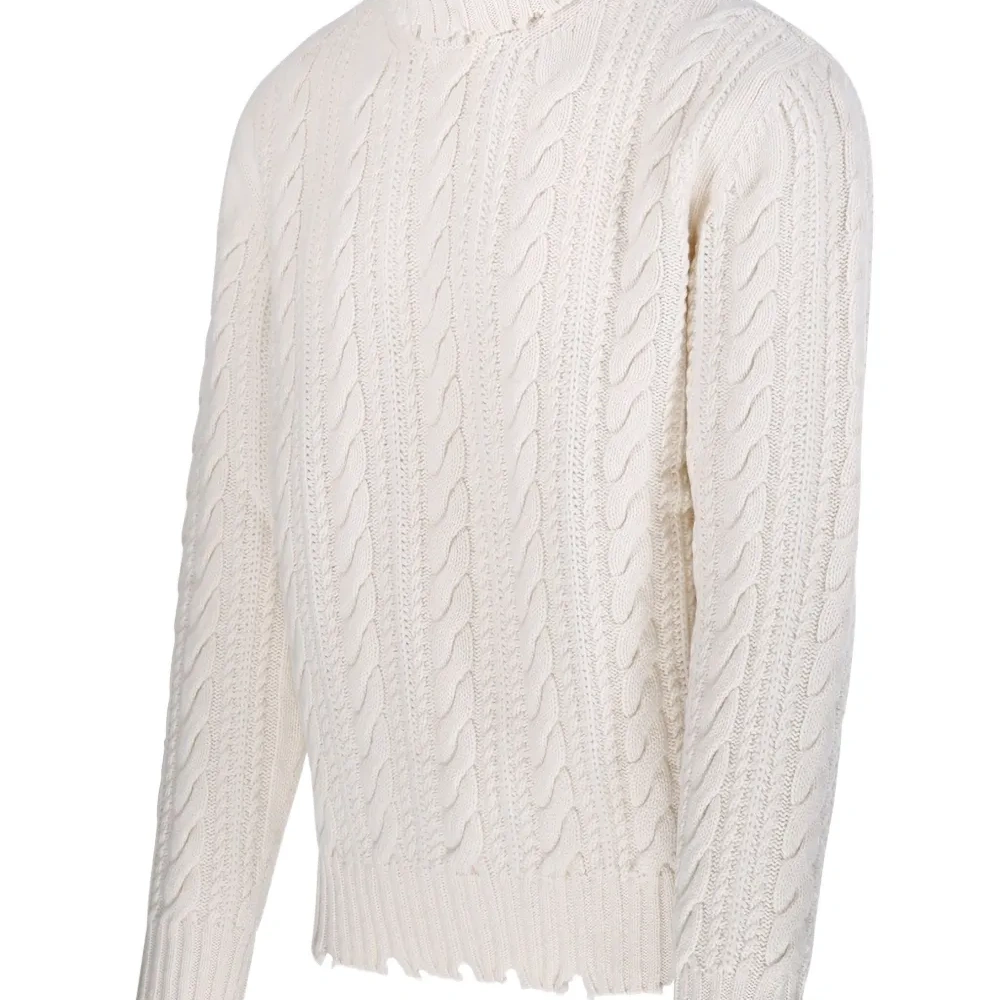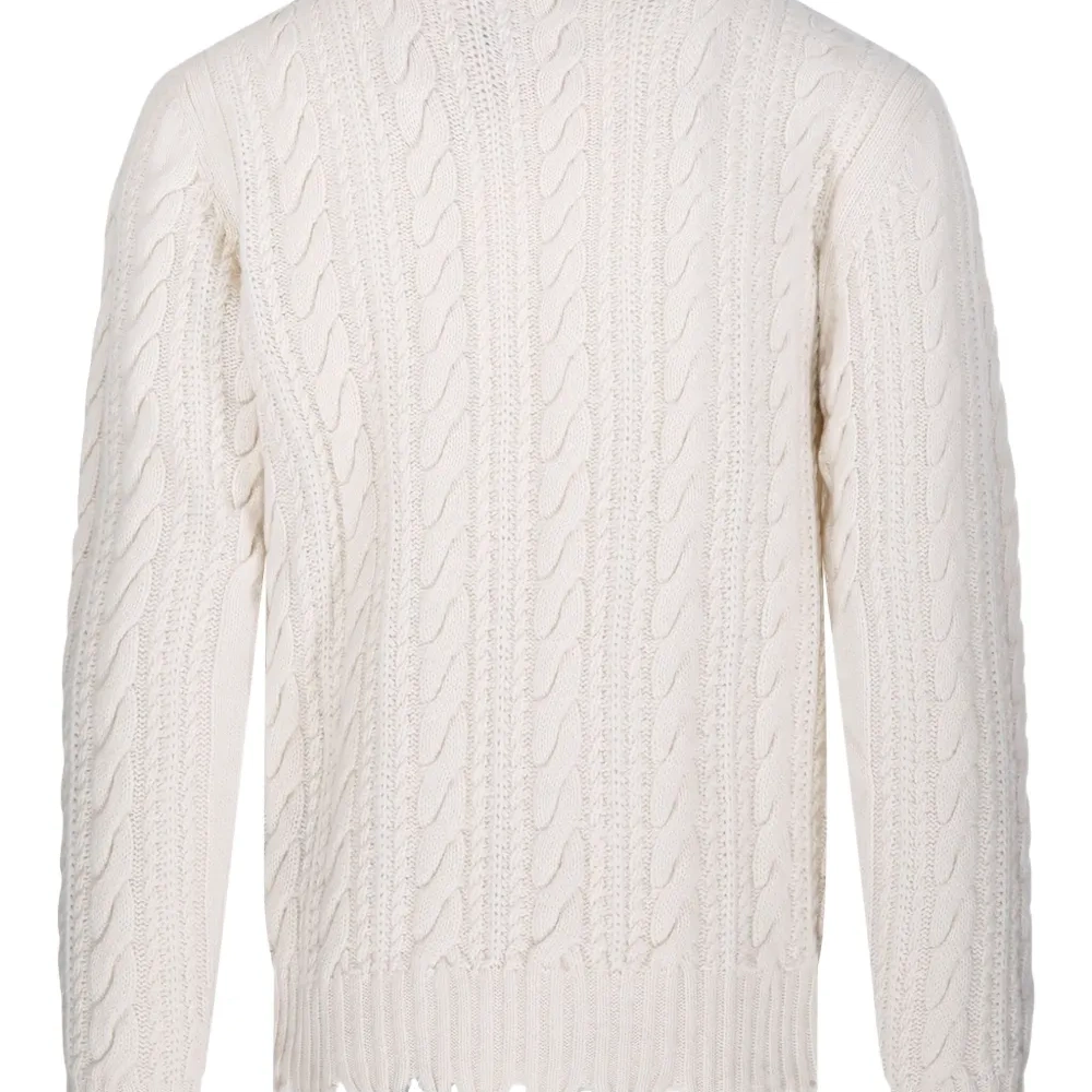 белый хлопок вязаный жгутом потёртый край круглый вырез длинные рукава