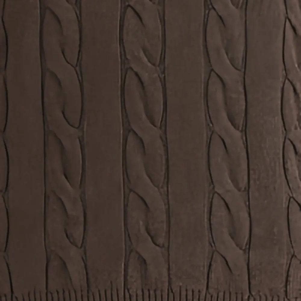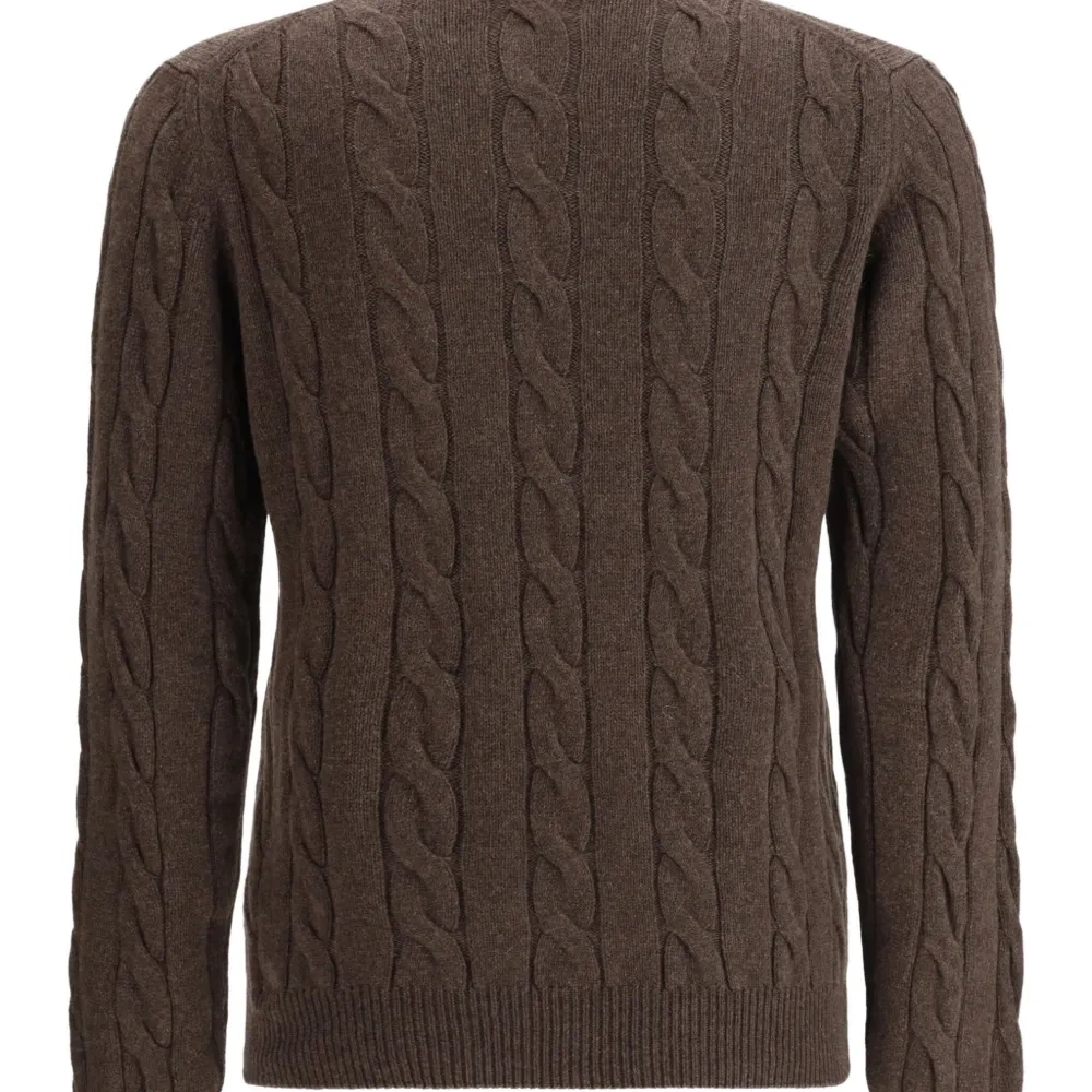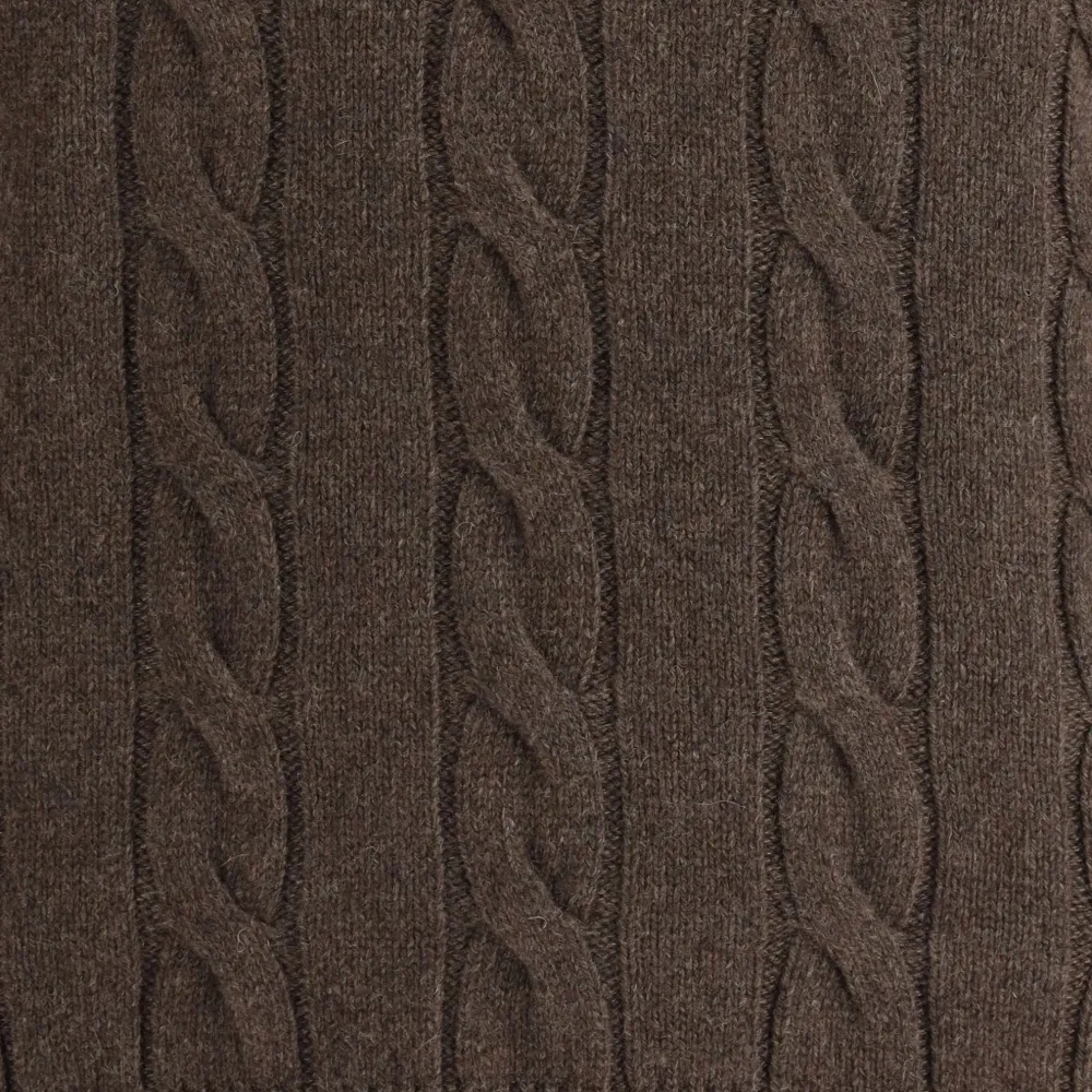коричневый свитер с косами, воротником-гольф, длинными рукавами, ребристым подолом и манжетами