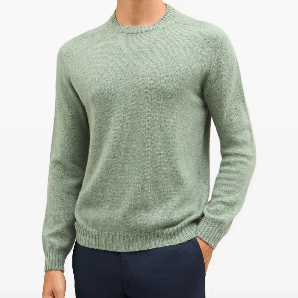светло-зеленый цвет шалфея, круглый вырез, длинные рукава, ребристый низ, ребристые манжеты