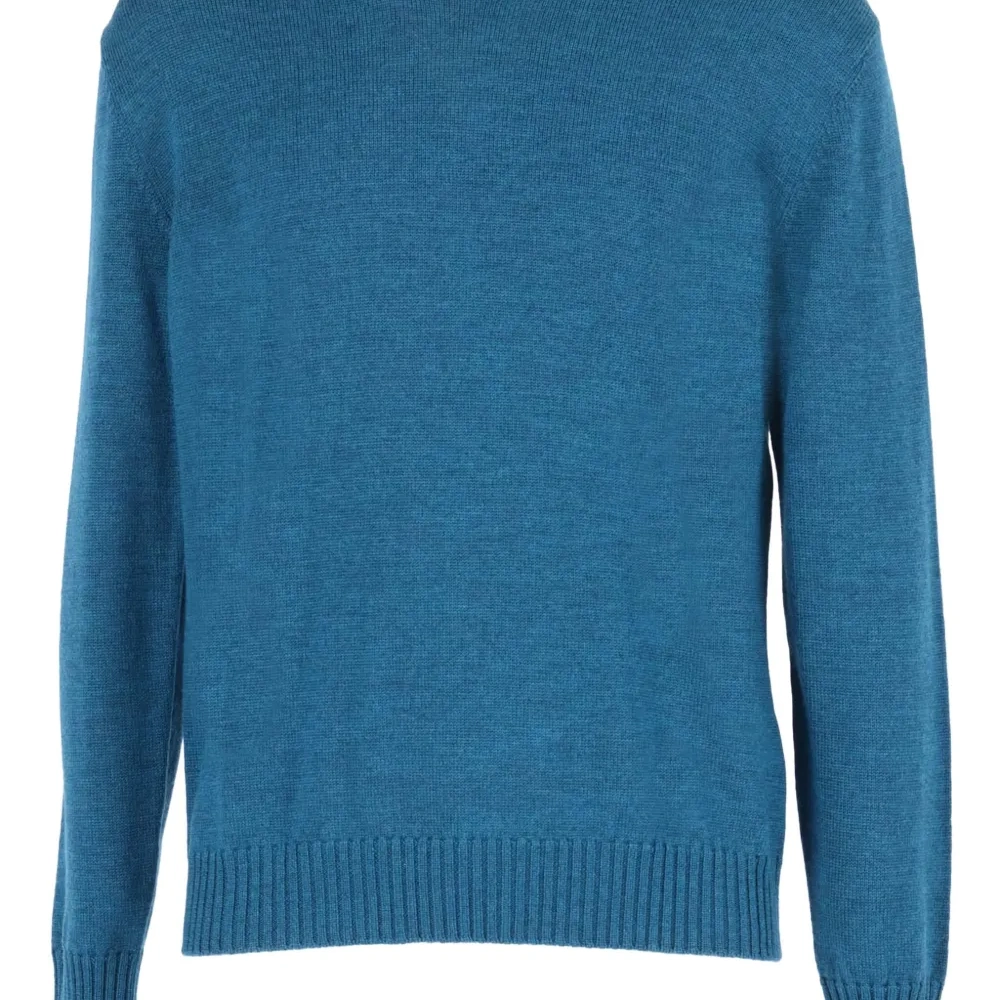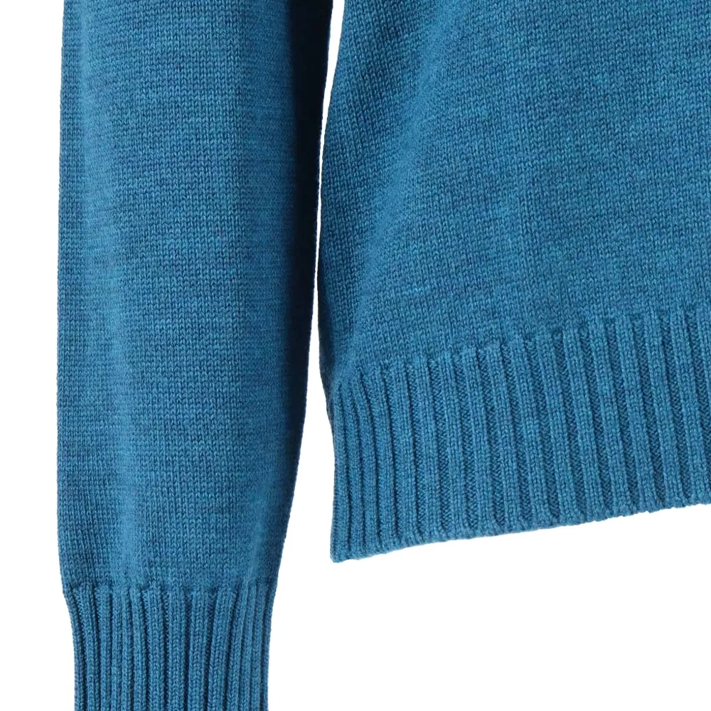 синий, с ребристыми краями снизу, ребристыми манжетами, круглый вырез, длинные рукава