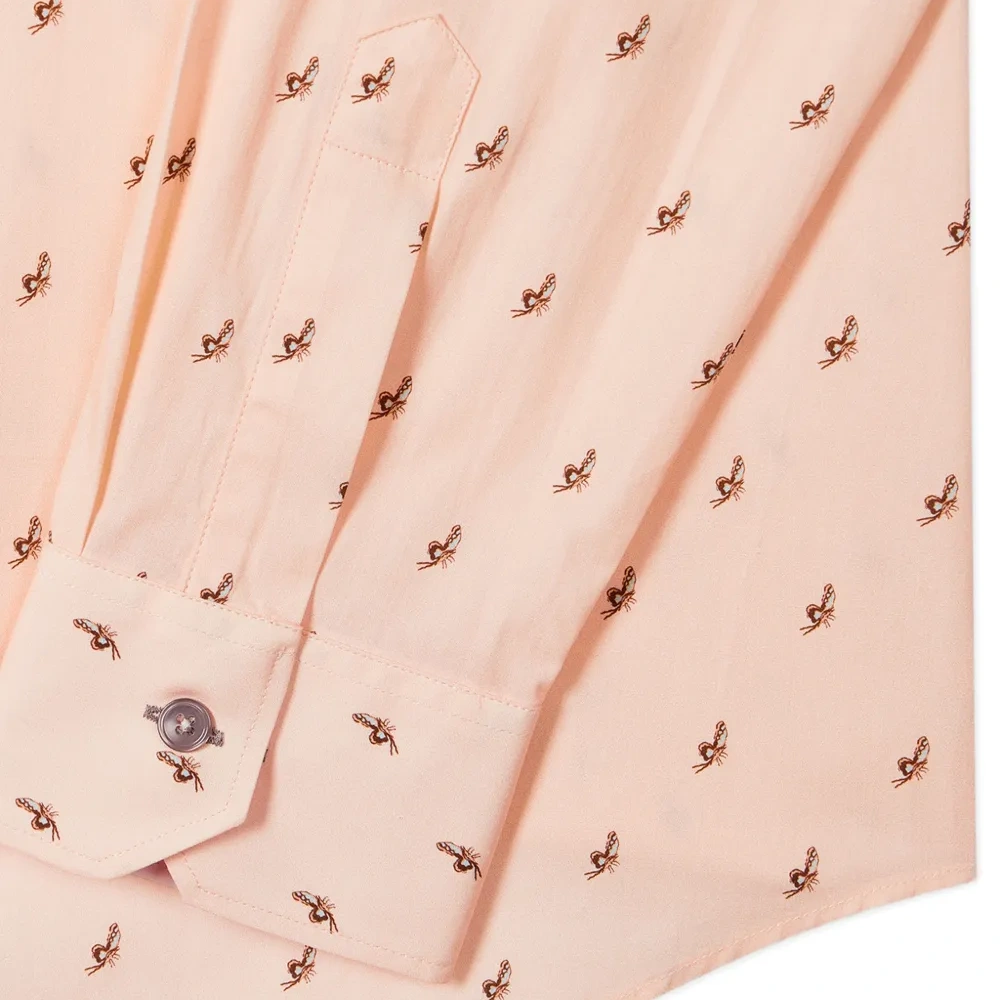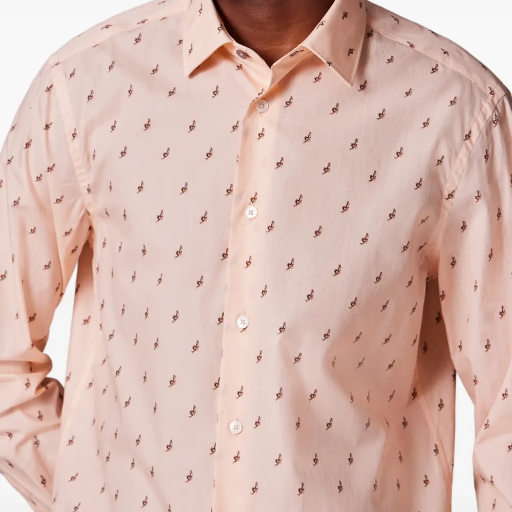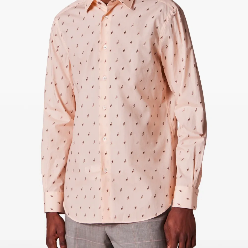 розовая с узором рубашка на пуговицах с длинными рукавами, манжетами на пуговицах и классическим воротником