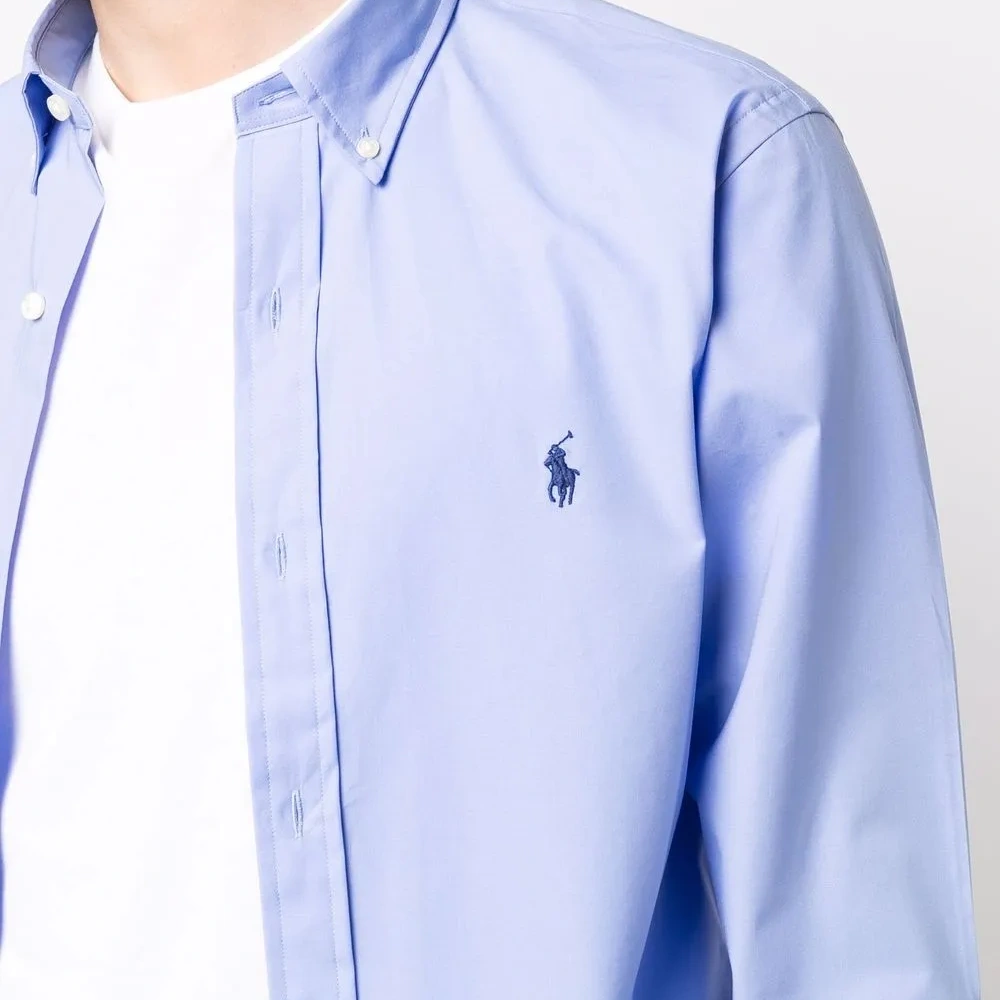Знаковый логотип Polo Pony, воротник на пуговицах, длинные рукава и застежка на пуговицах спереди. Цвет: синий.