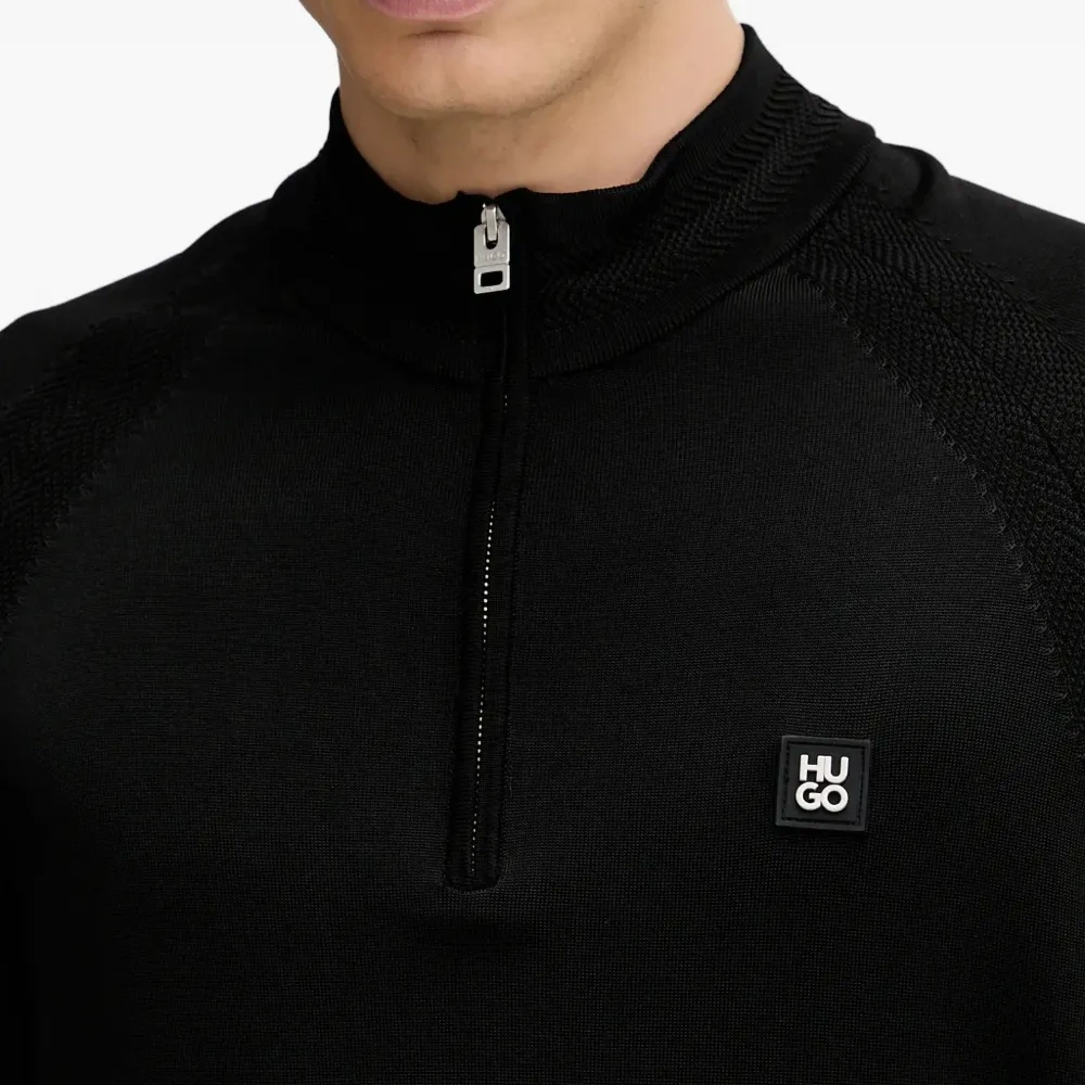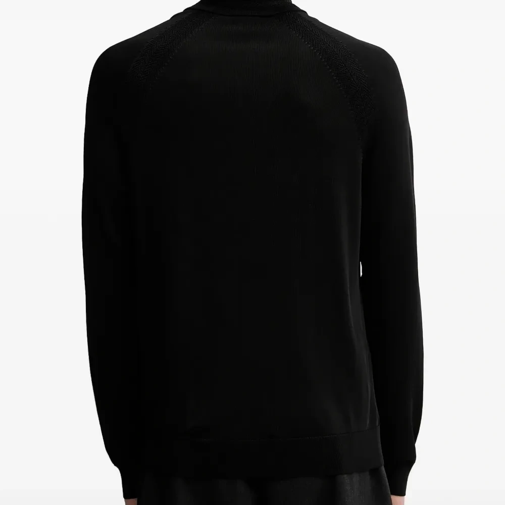черный свитер с четверной молнией, рукавами-реглан и нашивкой с логотипом, вязаный