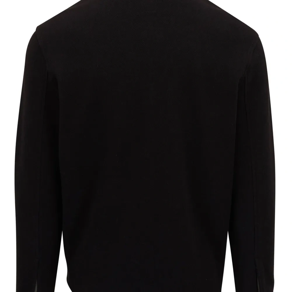 Черный, смесовый хлопок, прямой воротник, застежка на пуговицах спереди, длинные рукава, манжеты на пуговицах, два нагрудных кармана с клапанами и прямой подол.