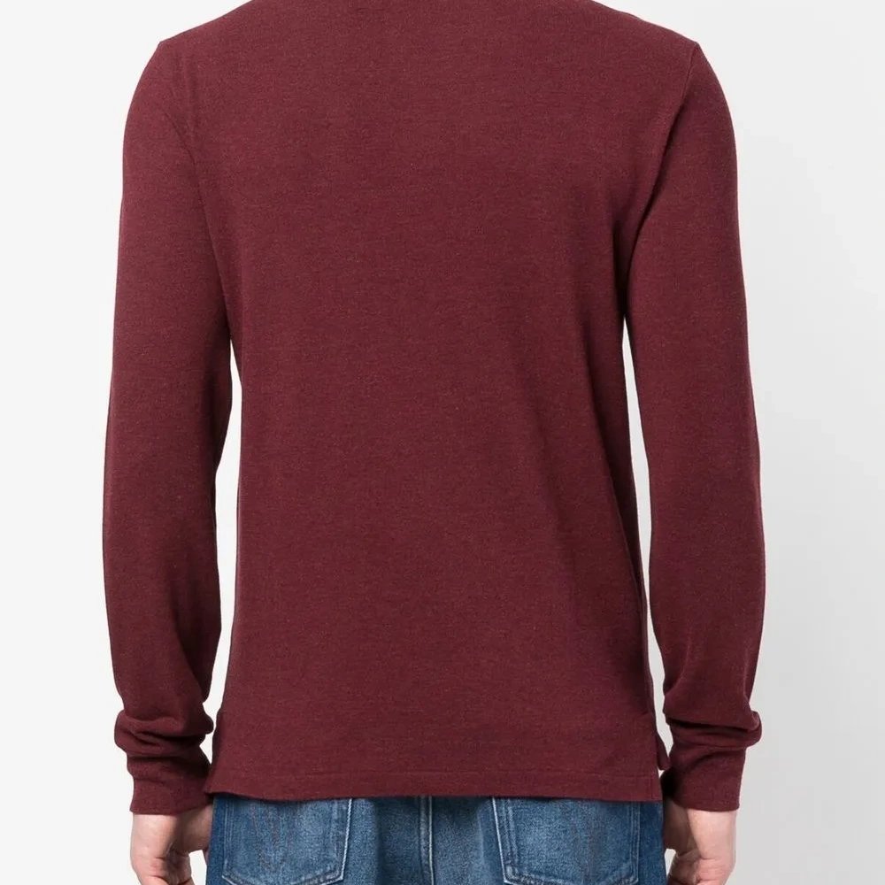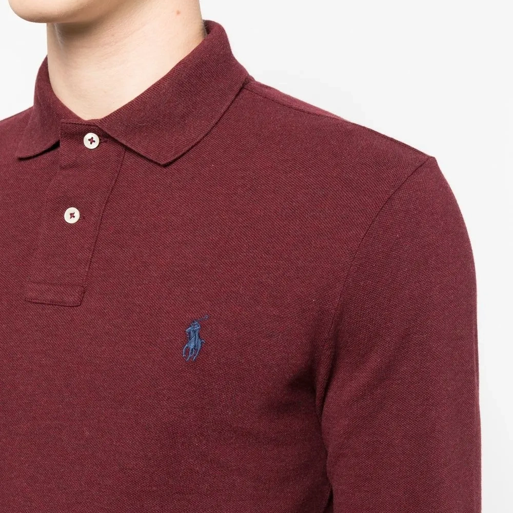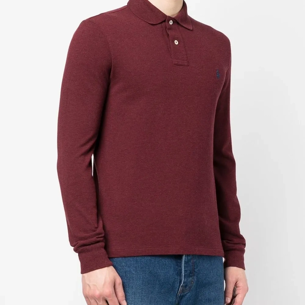 Темно-красный, хлопок, эффект меланж, знаковый логотип Polo Pony, вышитый логотип на груди, короткая застежка на пуговицах спереди, воротник поло, длинные рукава и прямой подол.