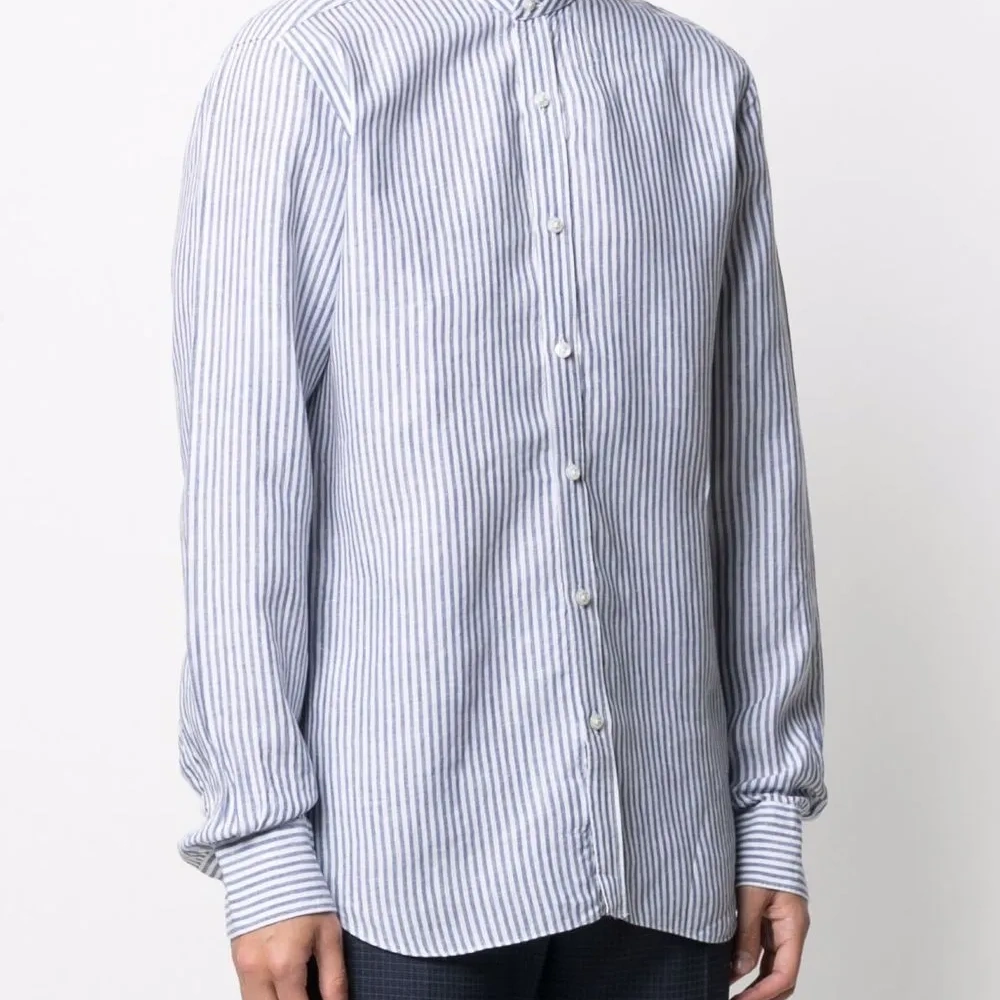 Узор в вертикальную полоску, воротник-стойка, застежка на пуговицах спереди, длинные рукава, манжеты на пуговицах и закругленный подол. POSITIVELY CONSCIOUS: Как минимум 50% основного материала, из которого сделан этот товар, отвечает нашим критериям экологичности. В состав входят органические или переработанные материалы и ткани, которые признаны более экологичными (лен, рами, TENCEL™ и т.д.).