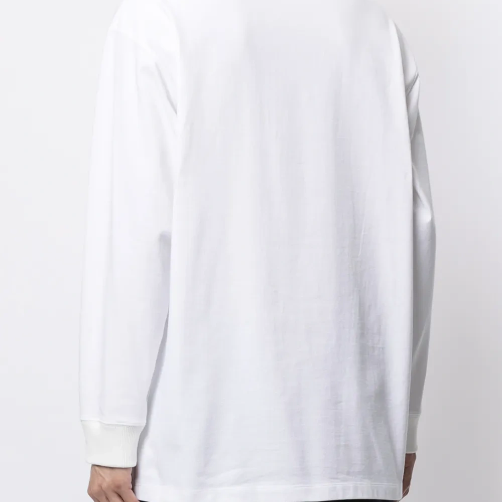 Прямой воротник, планка на пуговицах спереди, длинные рукава, манжеты в рубчик и прямой подол. Это унисекс-модель. Обратите внимание, что для нее используется мужская размерная сетка.