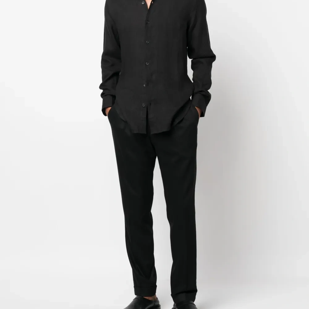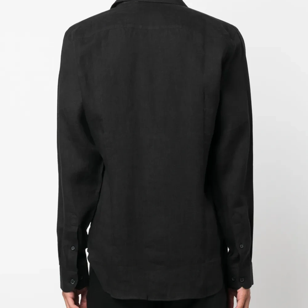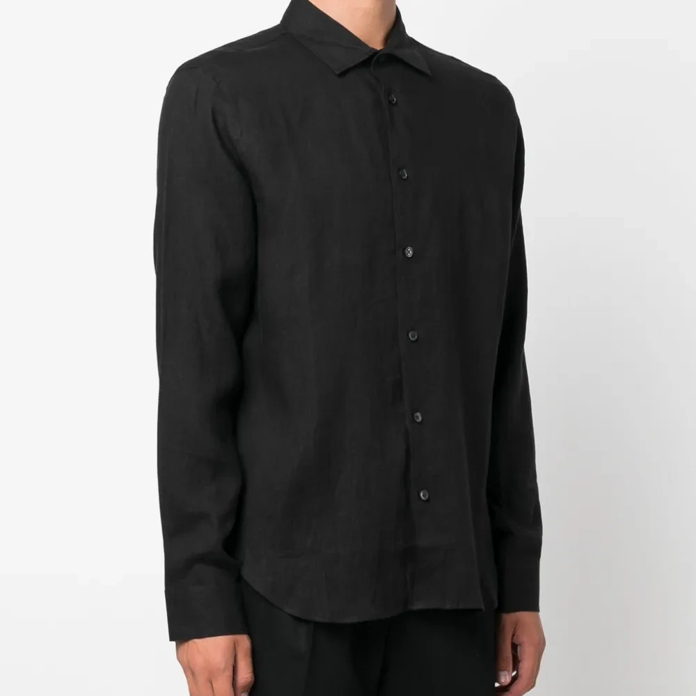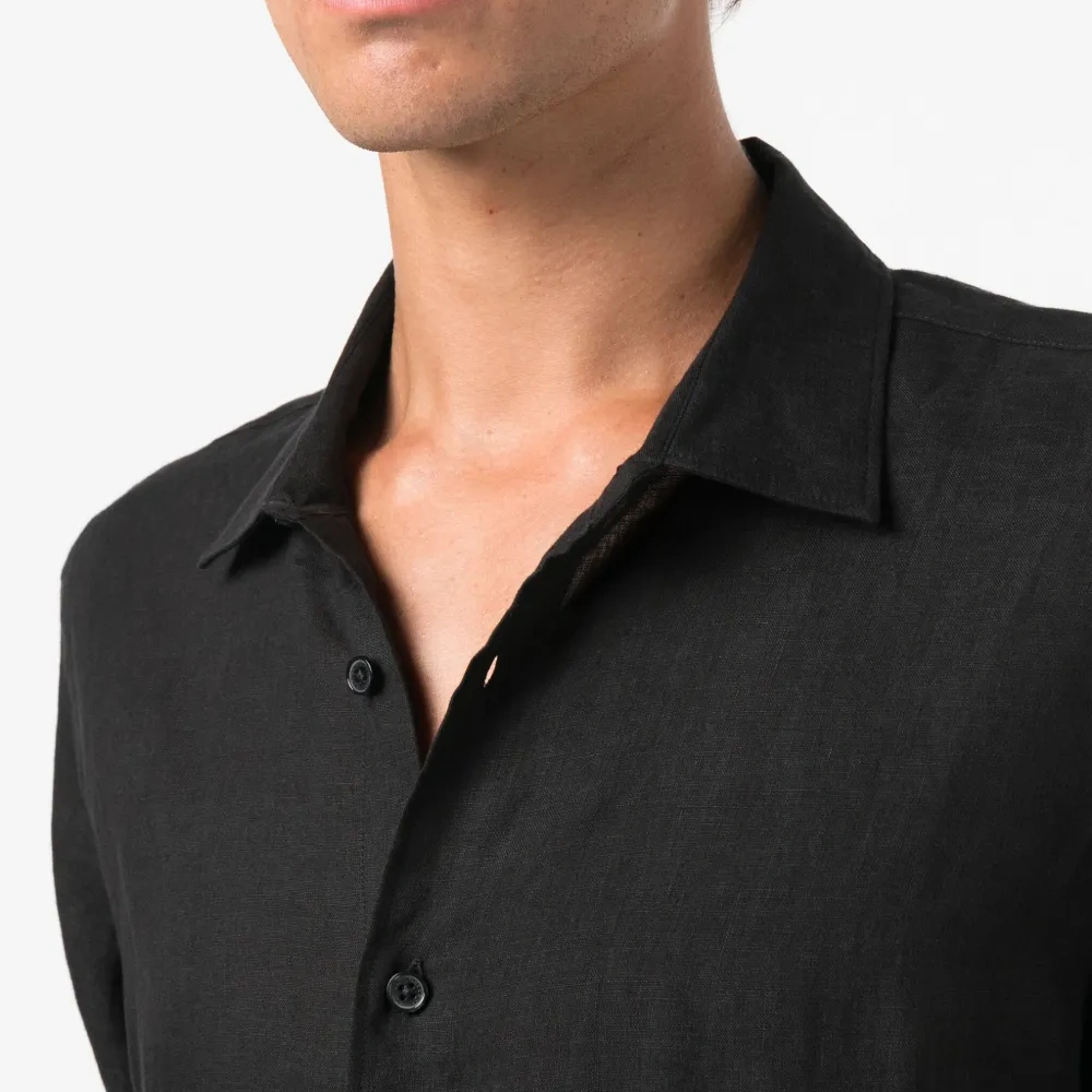Черный, лен, отложной воротник, застежка на пуговицах спереди, длинные рукава, манжеты на пуговицах и закругленный подол. Этот товар как минимум на 50% состоит из материалов, которые признаны более безопасными для окружающей среды, и/или произведены с использованием методов, которые помогают сократить потребление воды и химических веществ. Узнать больше о том, какие товары получают отметку «Ответственный выбор», можно из материала «Как мы оцениваем экологичность и этичность».