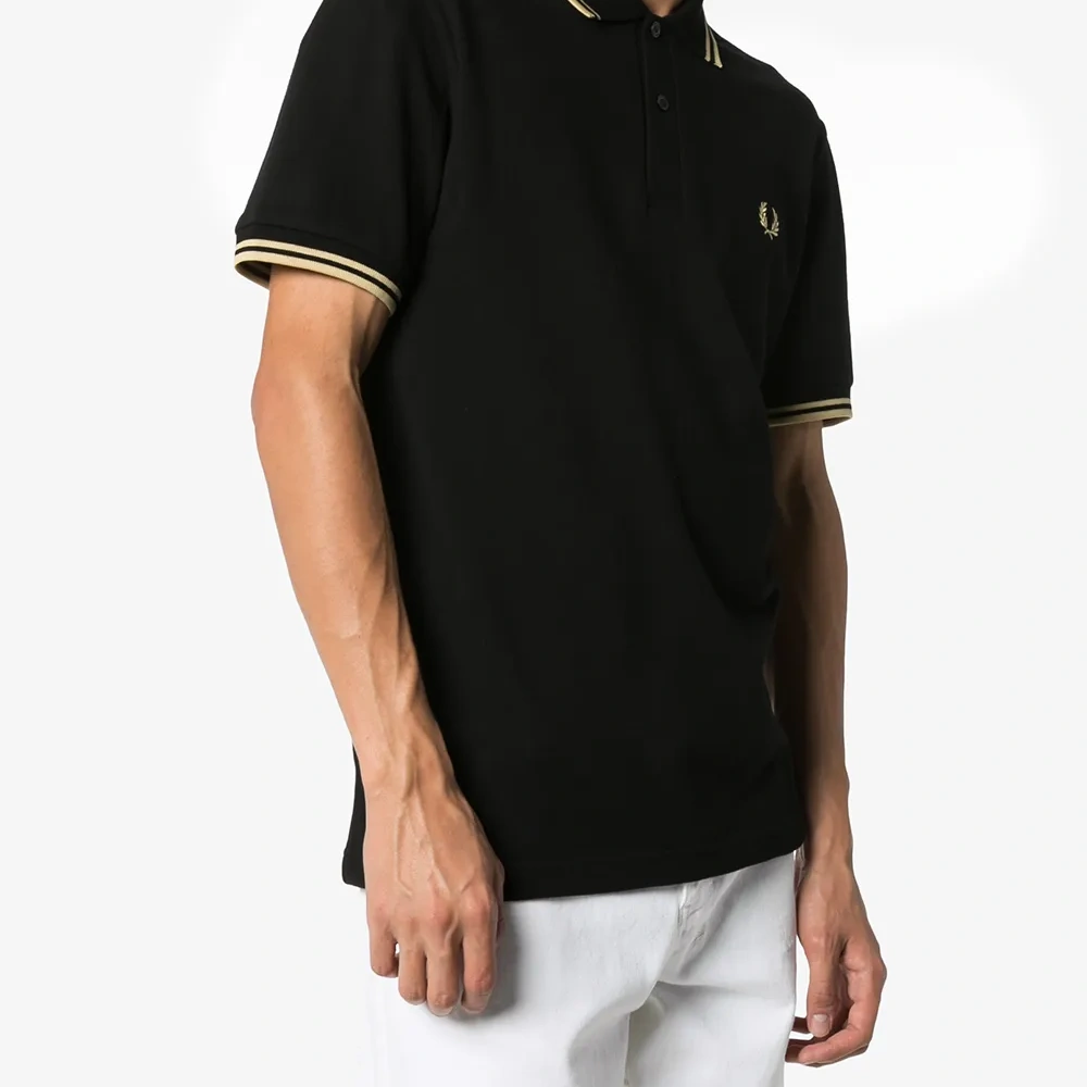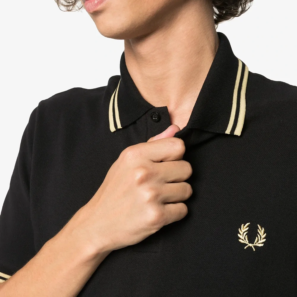 Рубашка-поло с отделкой в полоску от Fred Perry. Косой воротник и застежка на пуговицы.