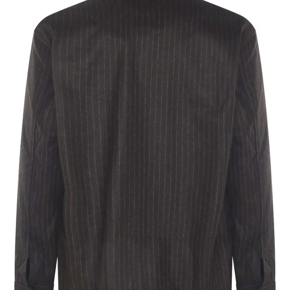темно-коричневый в полоску (вырезка) застежка на пуговицы спереди длинные рукава нагрудный накладной карман