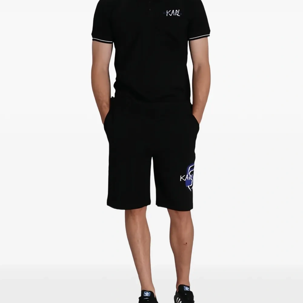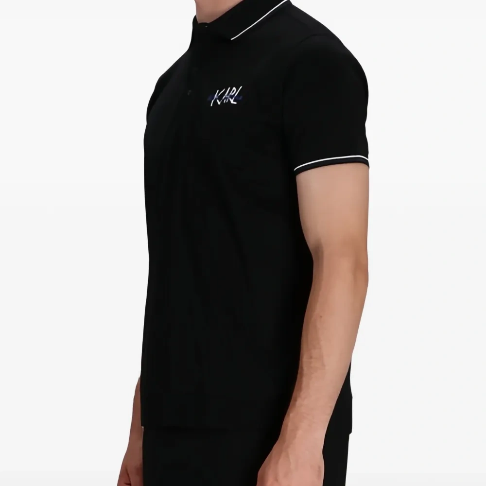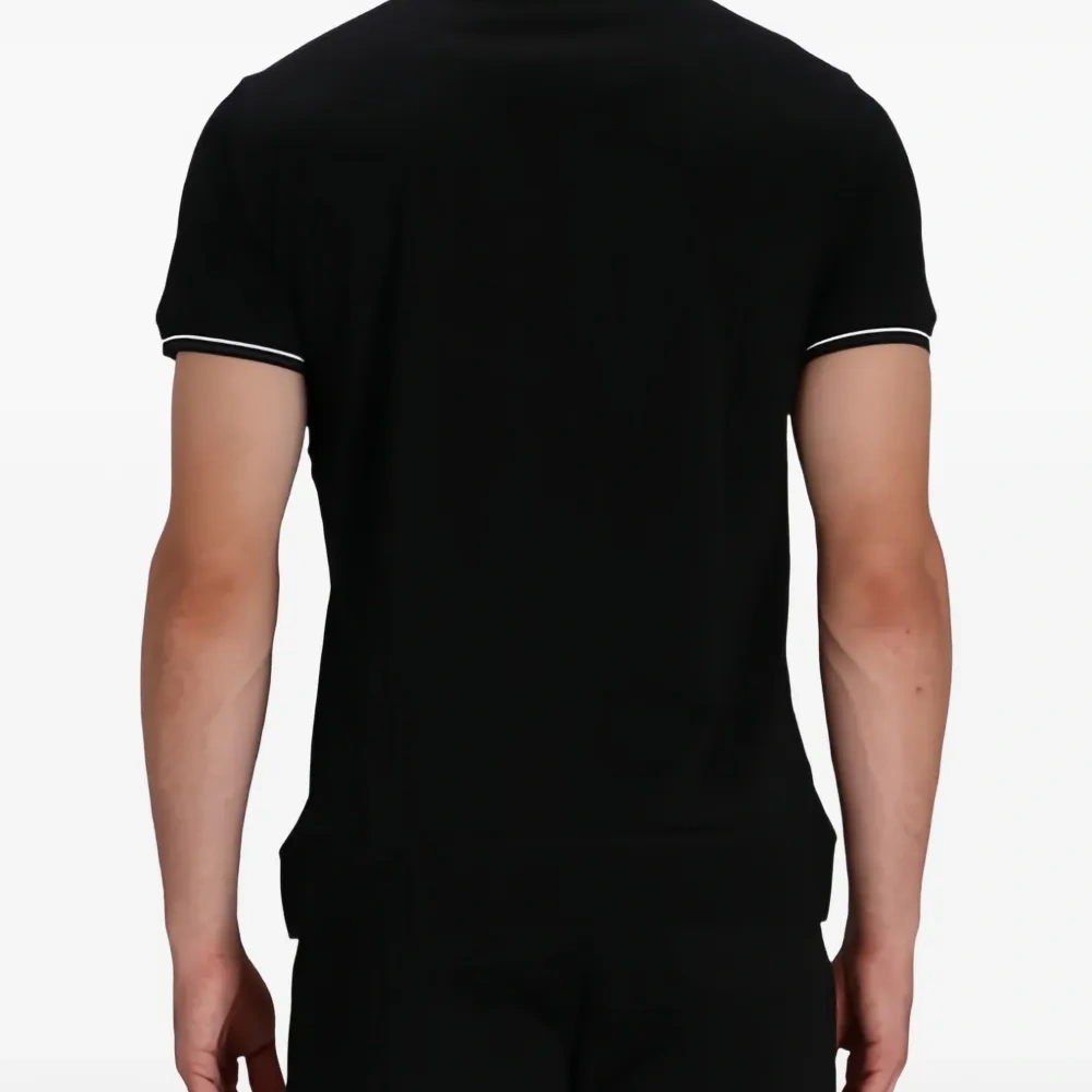 черная хлопковая футболка с логотипом, ребристым воротником, короткими рукавами и застежкой на пуговицы