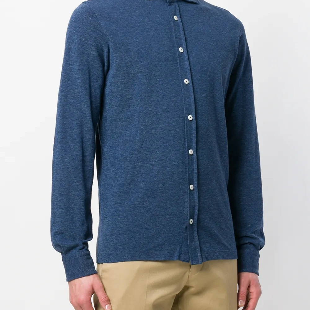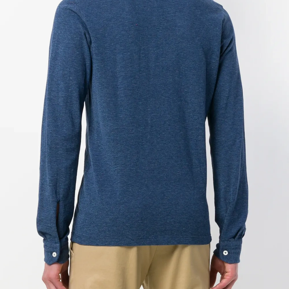 Синяя хлопковая рубашка-поло с длинными рукавами от Barba.