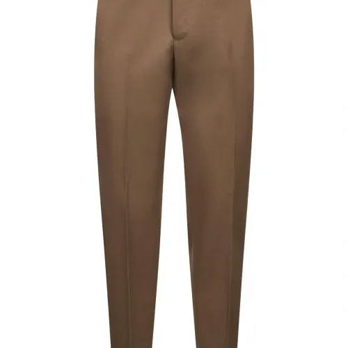 бежевые брюки из шерсти ягненка со средней посадкой, прямым кроем, застежкой на пуговицы и шлевками для ремня