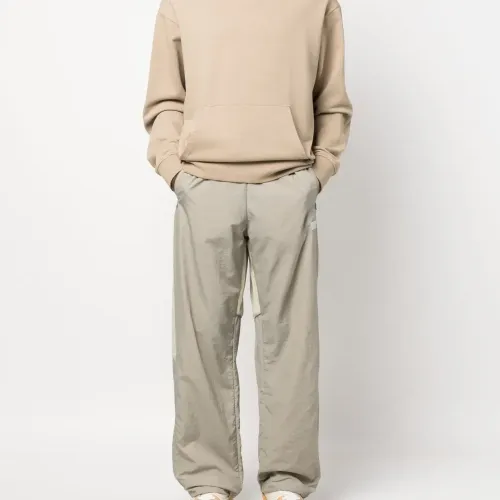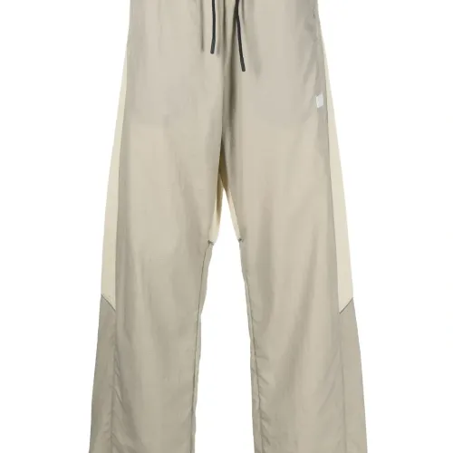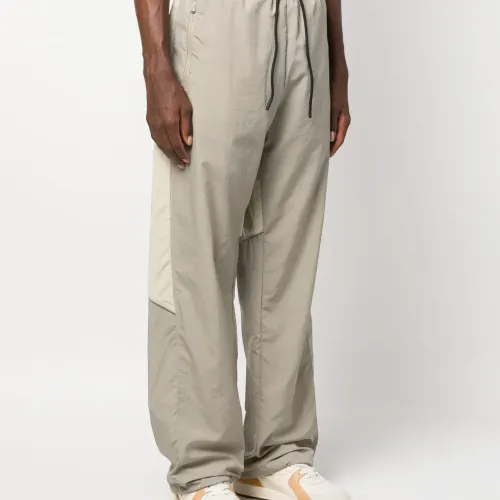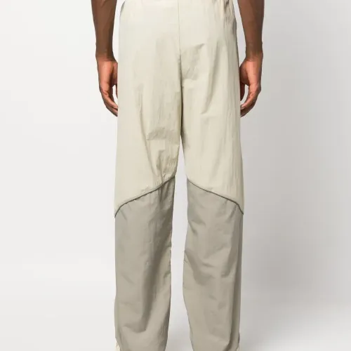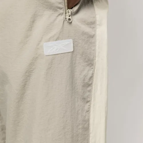 Бежевый, цвет слоновой кости, стиль колор-блок, рипстоп, нашивка с логотипом сбоку, кулиска на талии, два кармана на молнии по бокам и прямой крой.