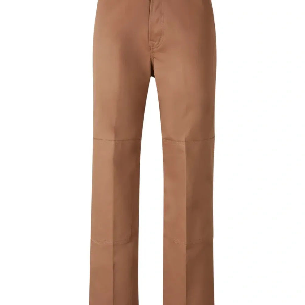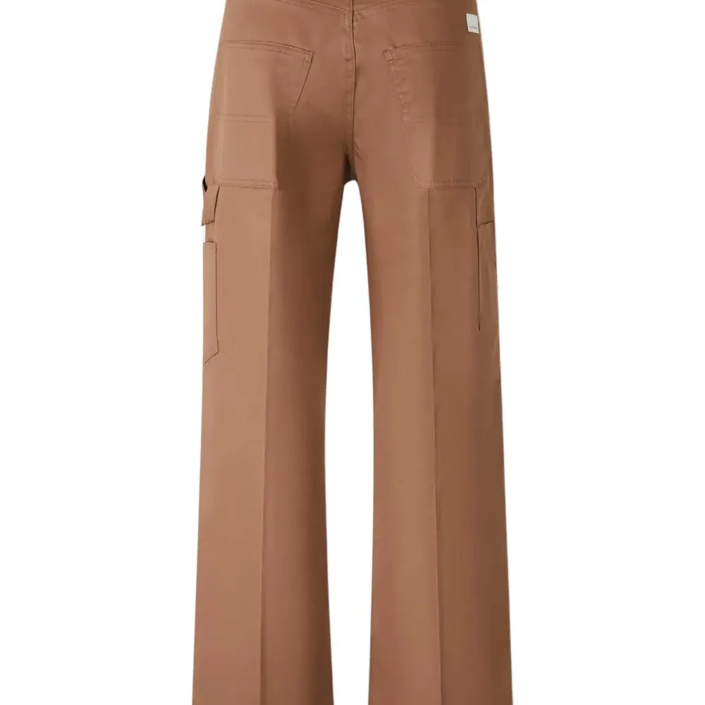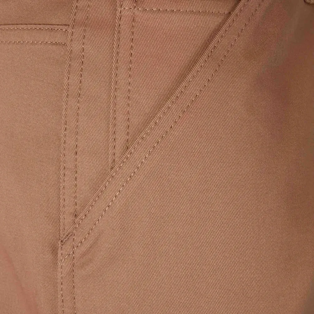 коричневый цвет, боковые карманы, застежка спереди на молнию и пуговицу, прямой подол, ненавязчивые швы