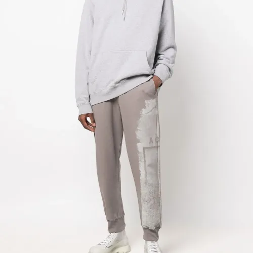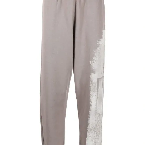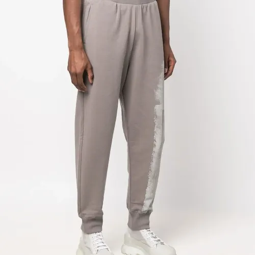 Принт с логотипом, эластичный пояс, два прорезных кармана по бокам, задние карманы с листочкой, прямой крой и манжеты в рубчик. Цвет: серый.