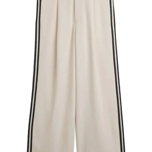кремовый хлопковый трикотаж, эластичный пояс, логотип спереди, боковые прорезные карманы, три полоски