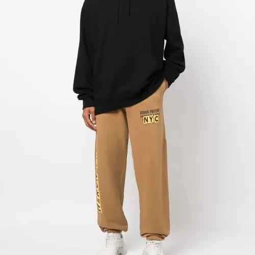 Коричневый, хлопок, логотип сбоку, эластичный пояс, эластичные манжеты и два прорезных кармана по бокам.