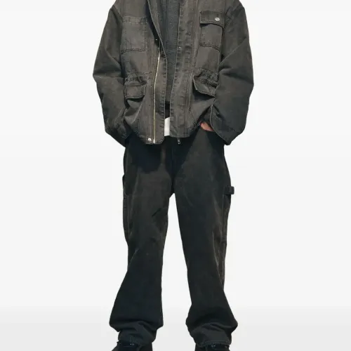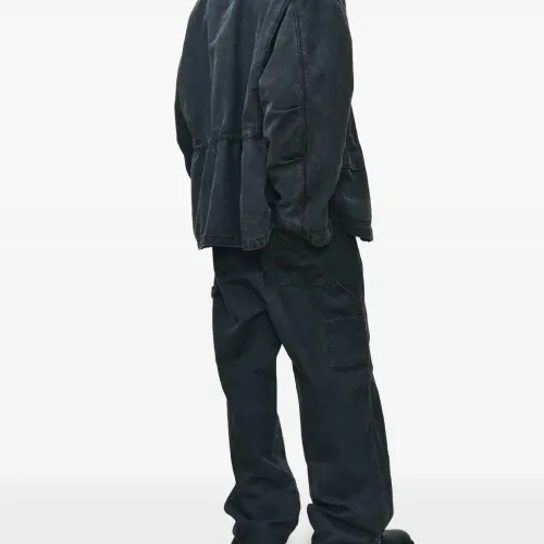 чёрные утилитарные карманы, застёжка на пуговицах, эффект потертости, прямой крой, пять карманов