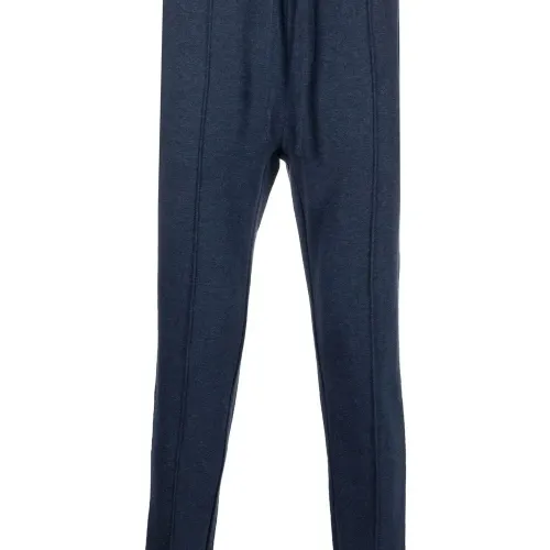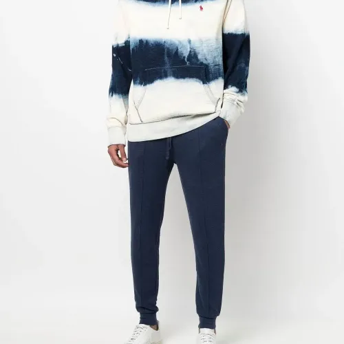 Темно-синий, смесовый хлопок, эффект меланж, узкий крой, знаковый логотип Polo Pony, эластичный пояс на шнурке, эластичные манжеты и прорезные карманы по бокам.