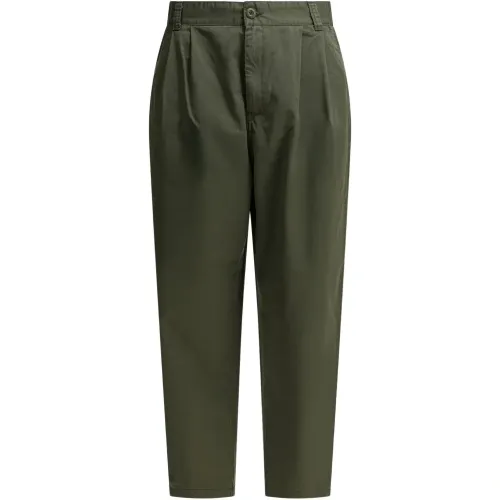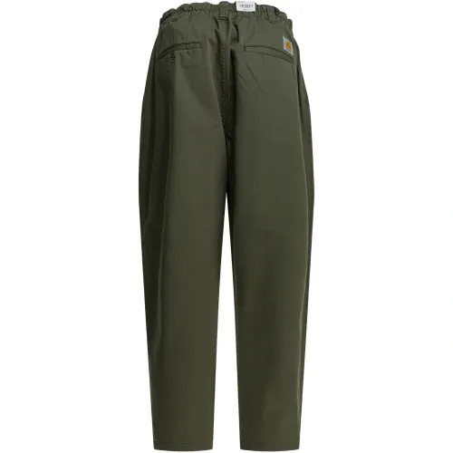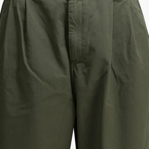 зелёные, с защипами спереди, эластичный пояс, накладной карман сзади, шлёвки для ремня, застёжка на пуговицу
