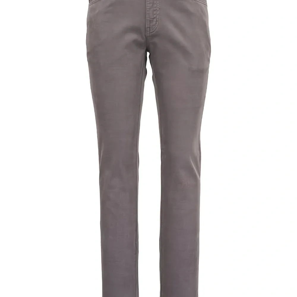 Каменно-серый цвет, застёжка на пуговицы, шлёвки для ремня, задние карманы, передние карманы.